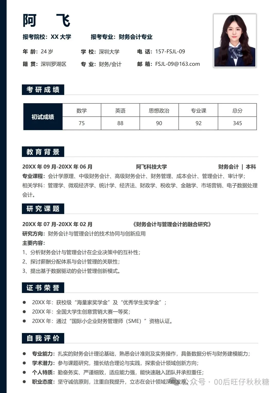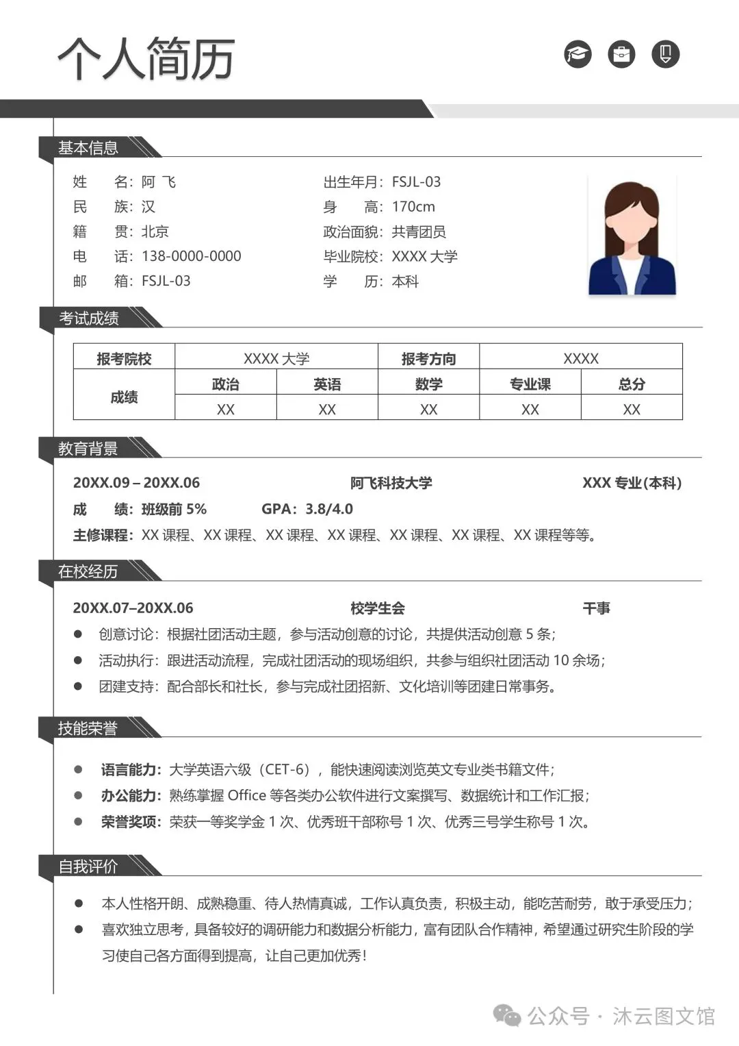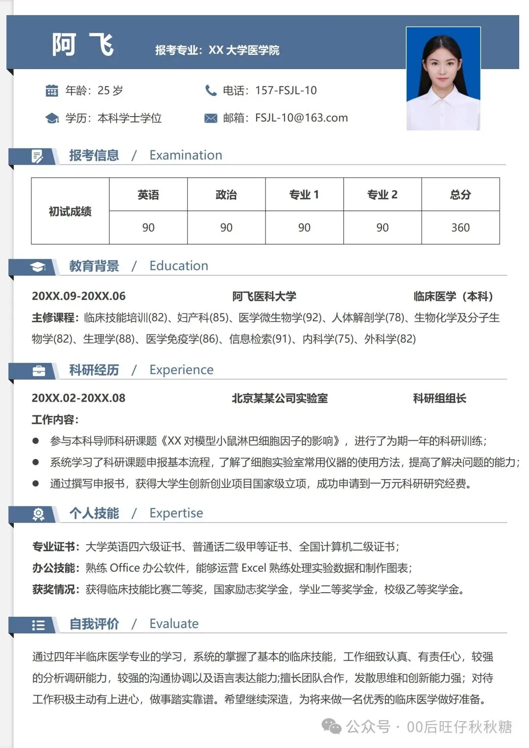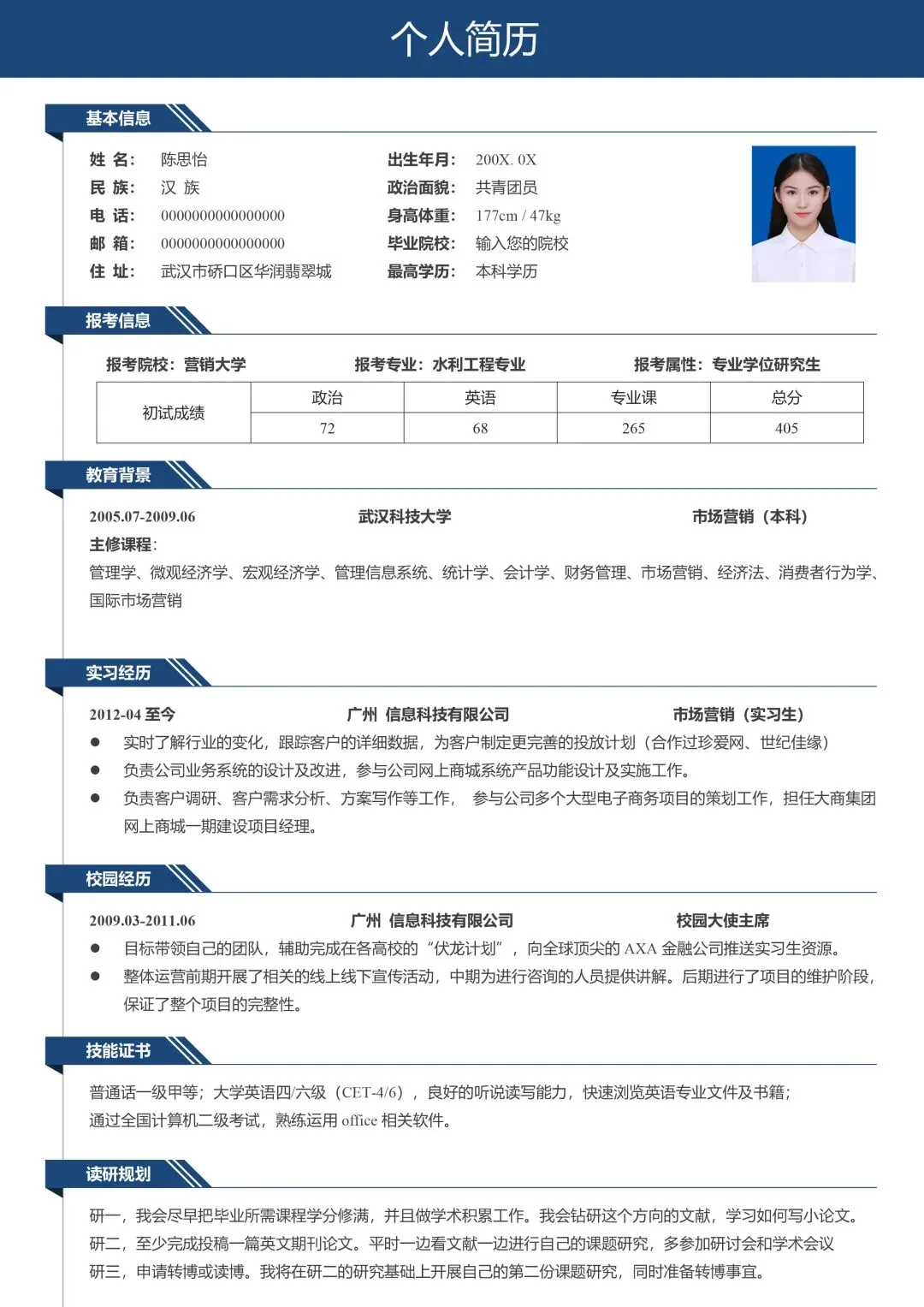 最后,我想说:在准备复试的过程中,一份优秀的复试简历是必不可少的,好的复试简历能帮助你在众多竞争者中脱颖而出,成为导师眼中的亮点。在此我祝愿所有的小伙伴都能得偿所愿,成功上岸!