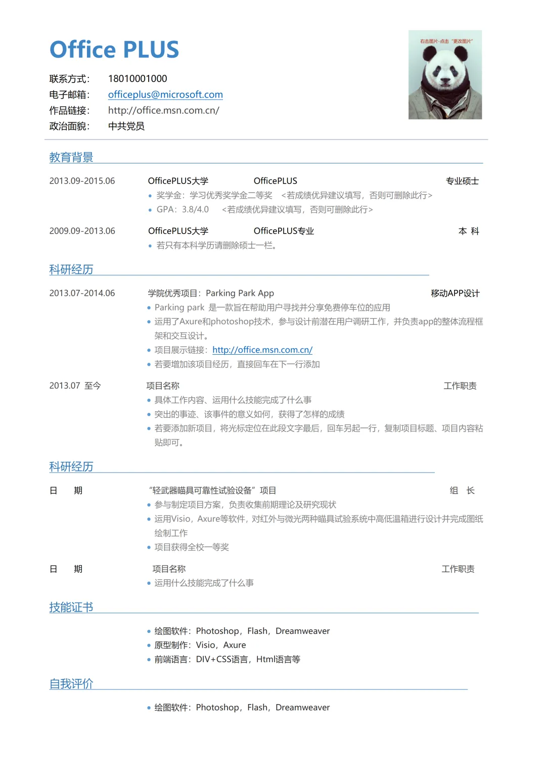 包含姓名,电话,邮箱,政治面貌等,最好还附带一张蓝底或者白底的照片,不要过度P图,男生要求干净利落,女生可以适当画淡妆,好的形象能在老师心里加印象分。
