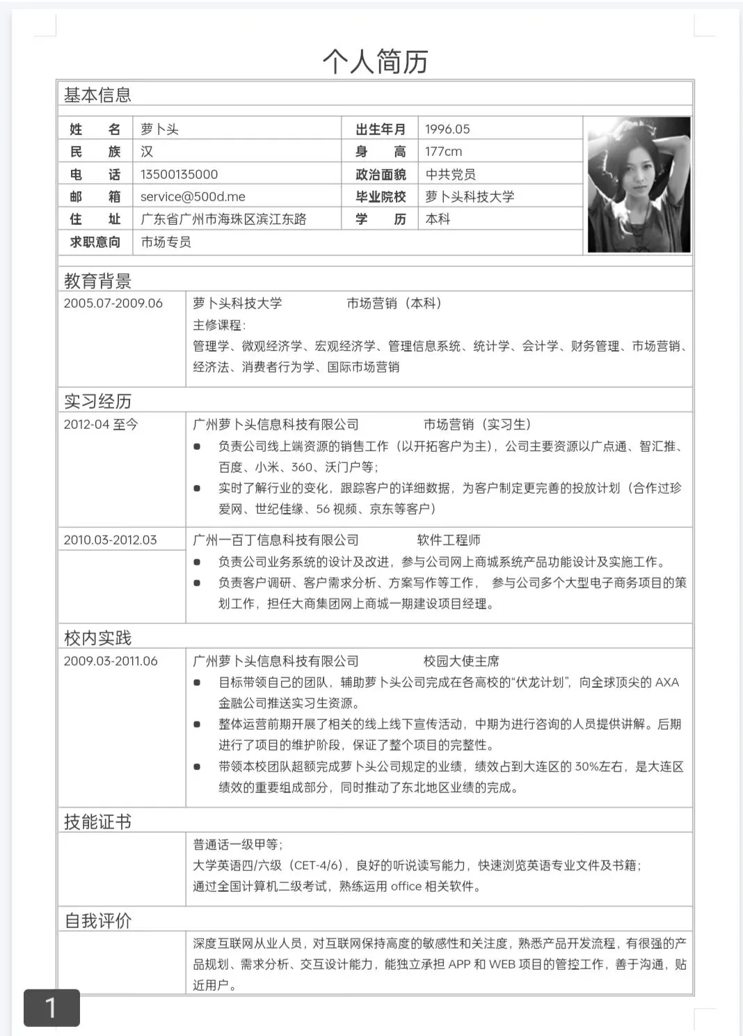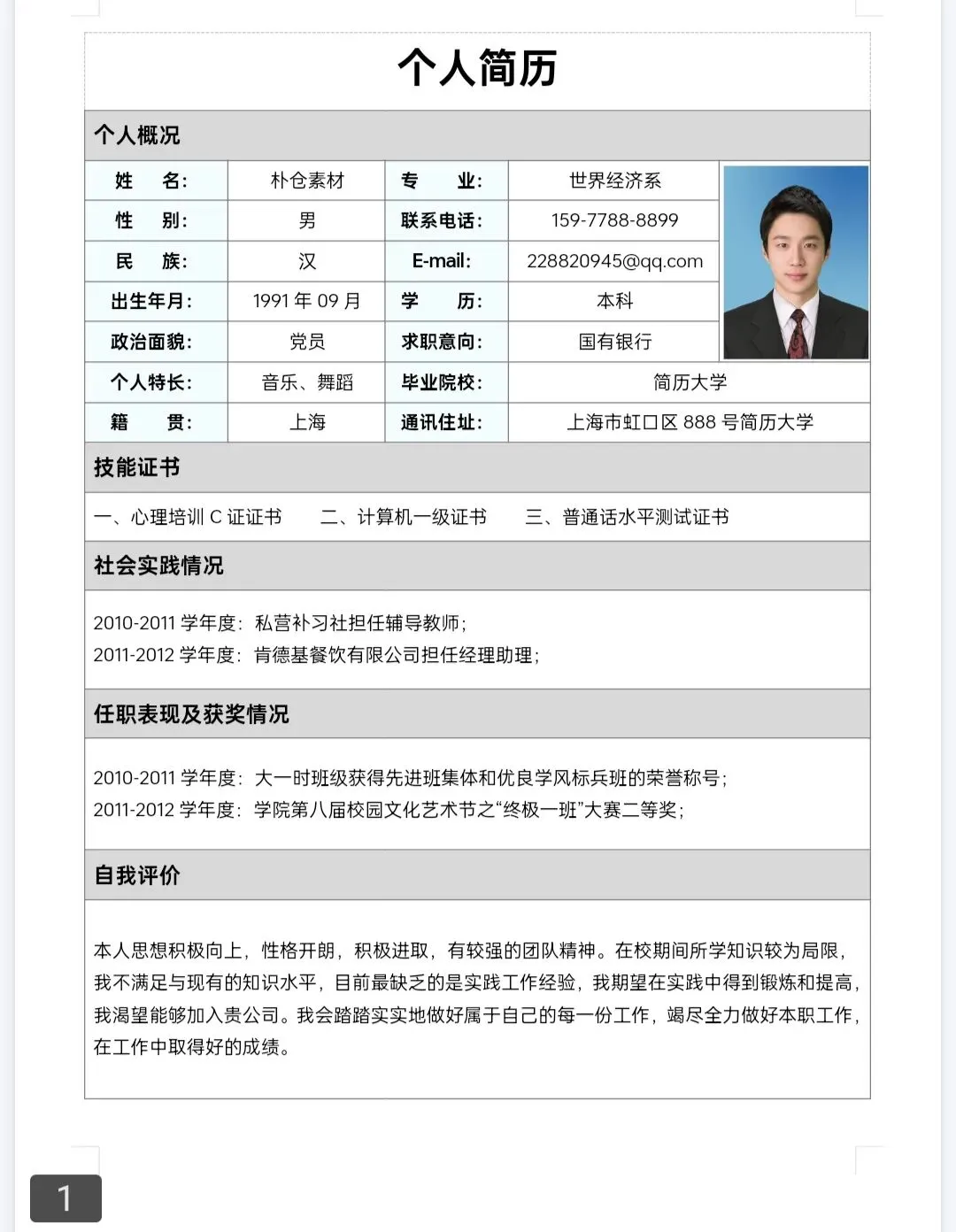 个人简历模板大全(265款),可编辑word格式,无套路免费下载!