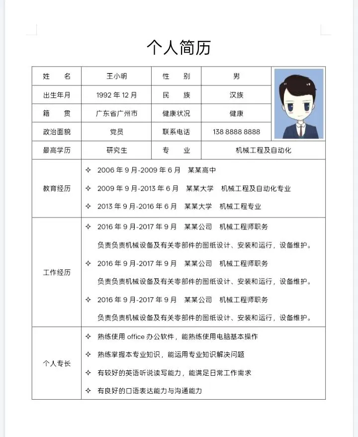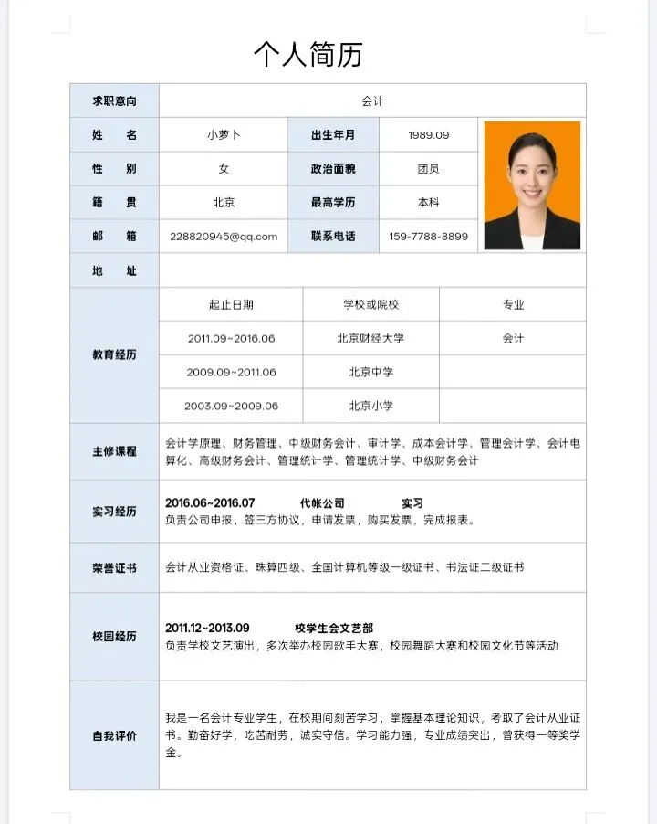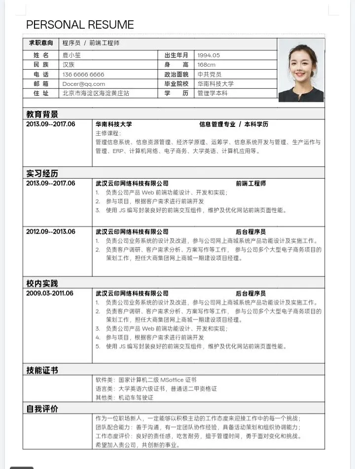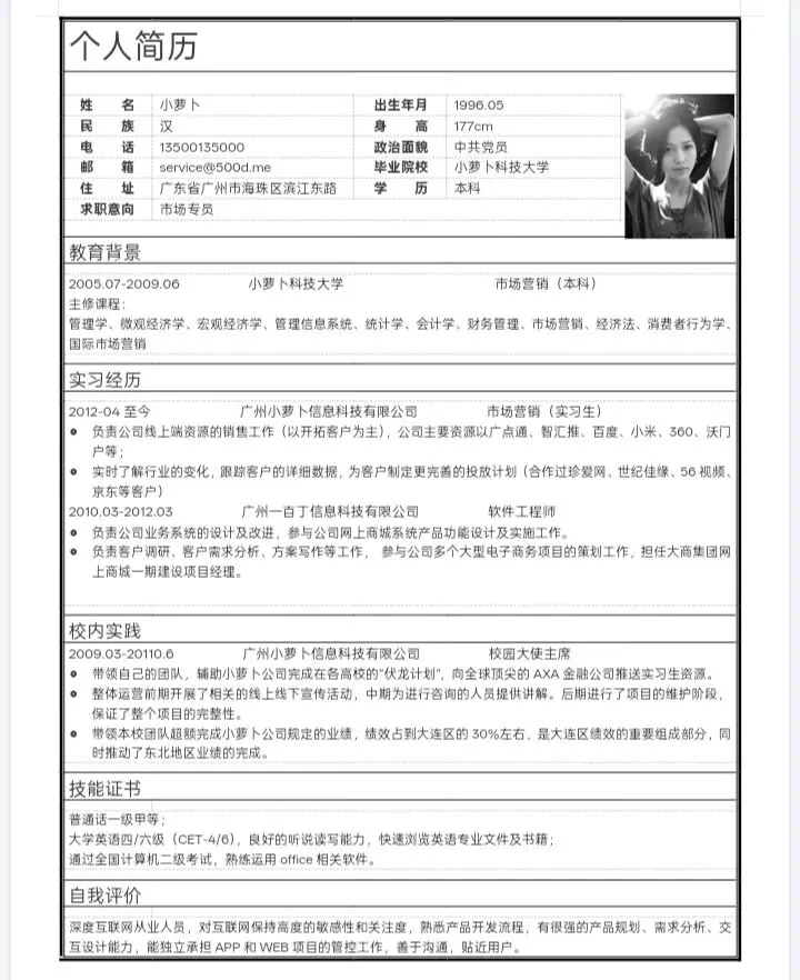 本文内容推荐:个人简历模板免费保存