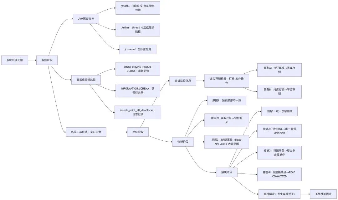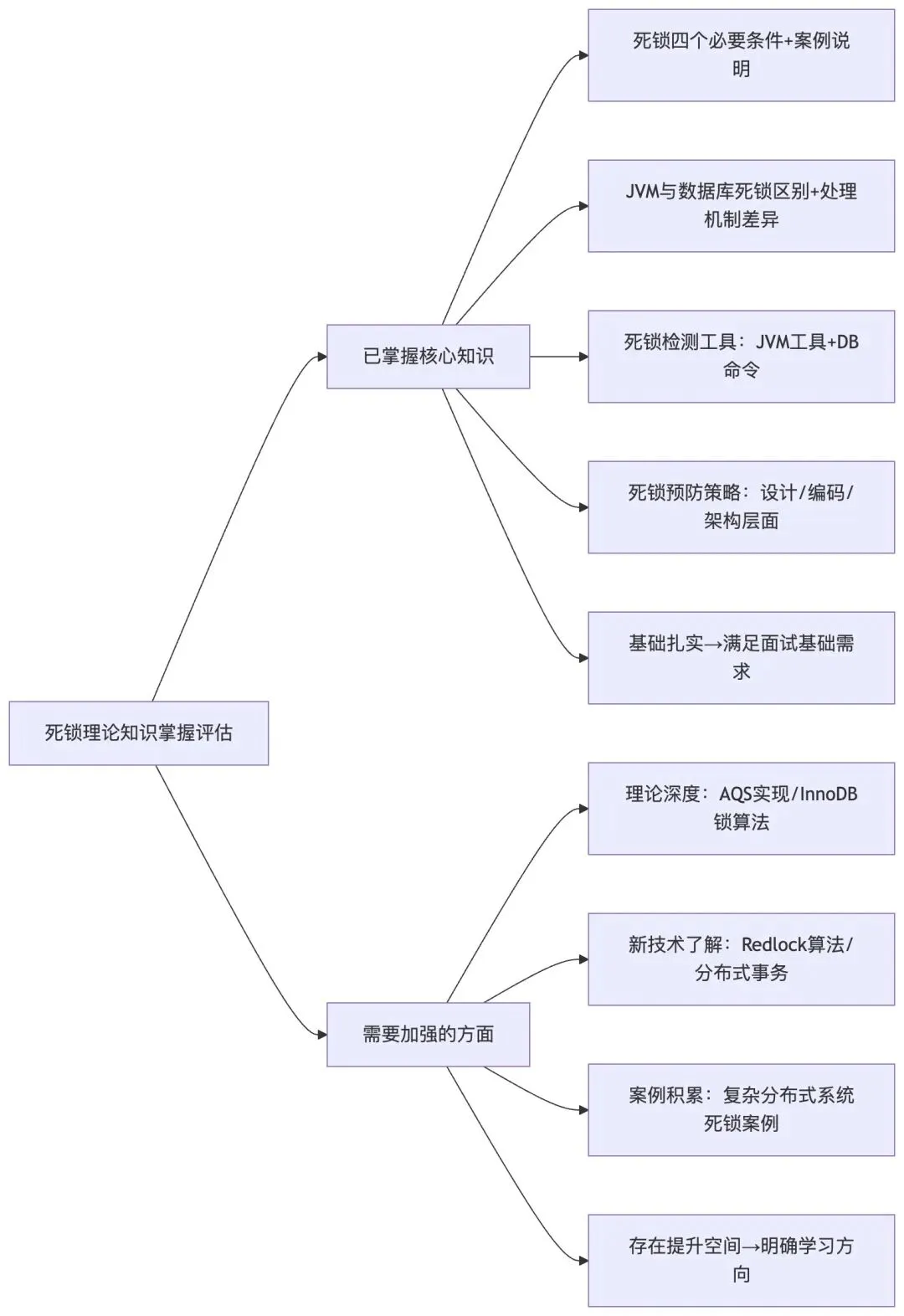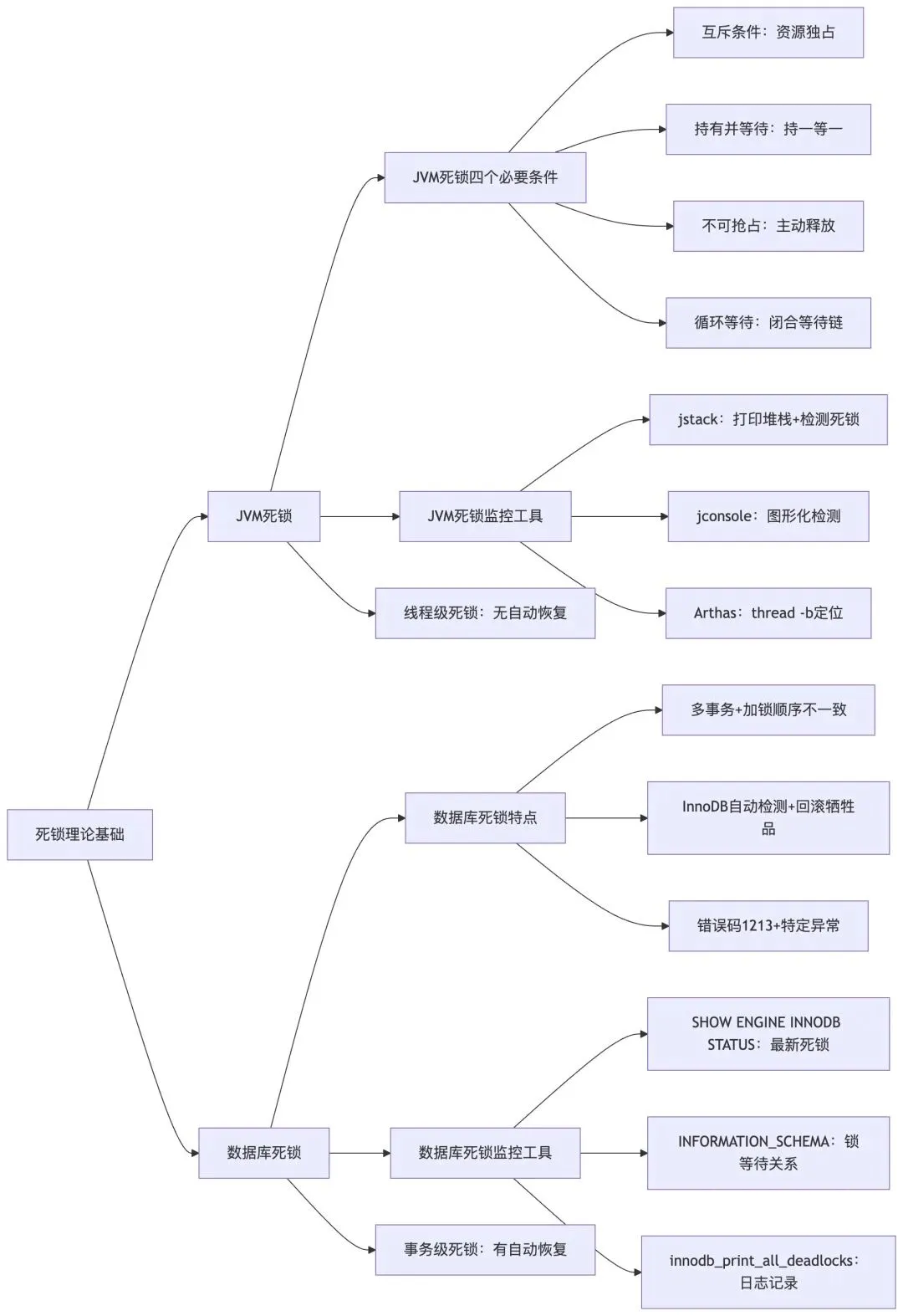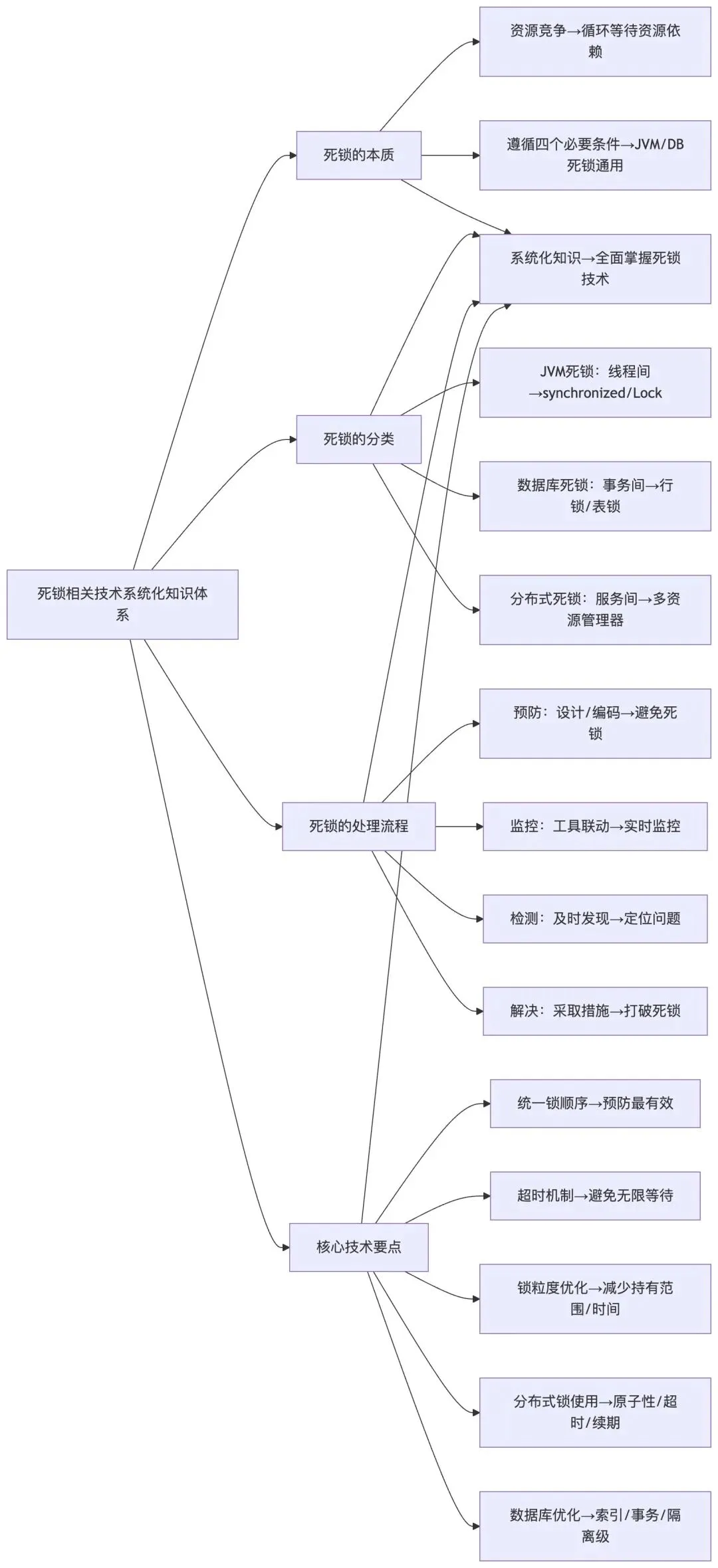 基于这次面试经历,我对死锁相关的技术进行了系统化的总结,形成了以下知识体系: