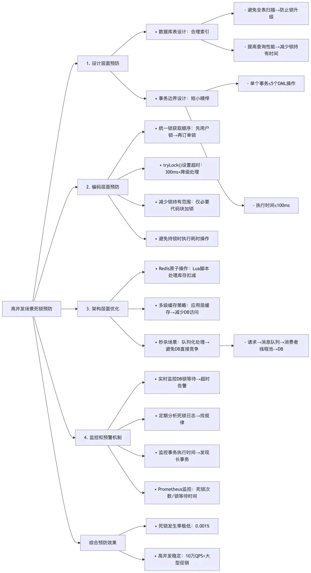"在高并发场景下,预防死锁比解决死锁更重要。根据我的经验,预防死锁需要从多个层面进行考虑。"