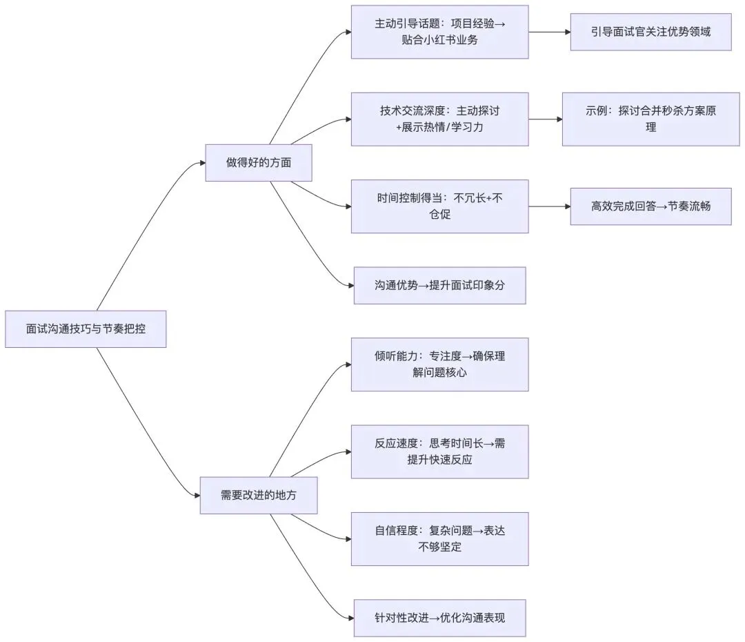 - 主动引导话题:在自我介绍时,我主动提到了与小红书业务相关的项目经验,成功引导面试官关注我的优势领域。