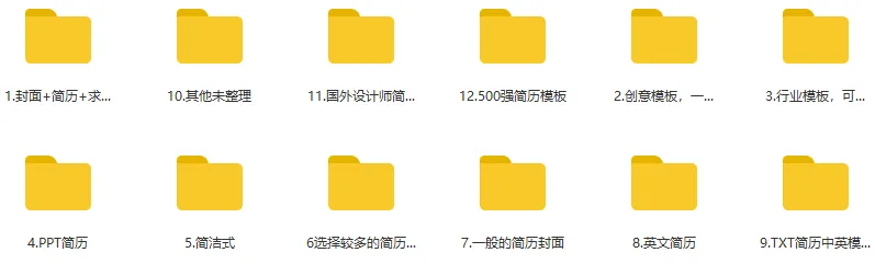 简历模板内容较多,已整理在云盘中
