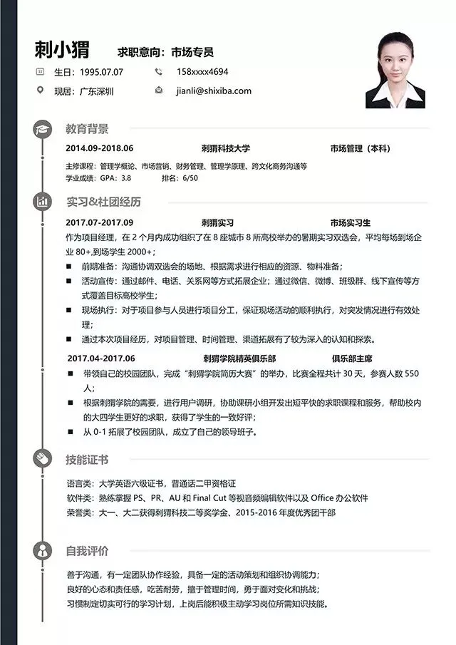 1 / 100个网黄学长推荐的简历模板