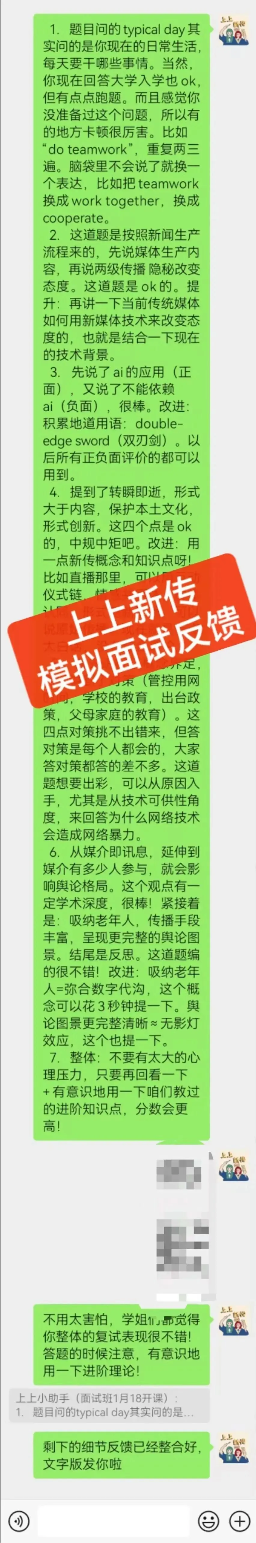授课学姐会碎碎念地讲到每个细节、每个小技巧,甚至连着装、发型、思维卡顿时如何应对等等。
