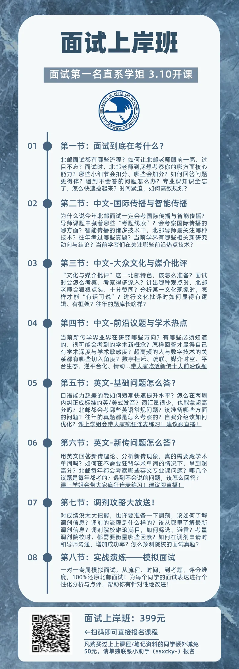 这门课可不是一般的课程哦!它是你的私人定制面试宝典,手把手教你复试/调剂的高分秘诀,主打一个安心!把心放肚子里!