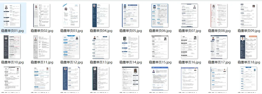 ✅ 稳重单页 27 套正式大气、专业严谨,适合国企、文职、金融、公职类求职