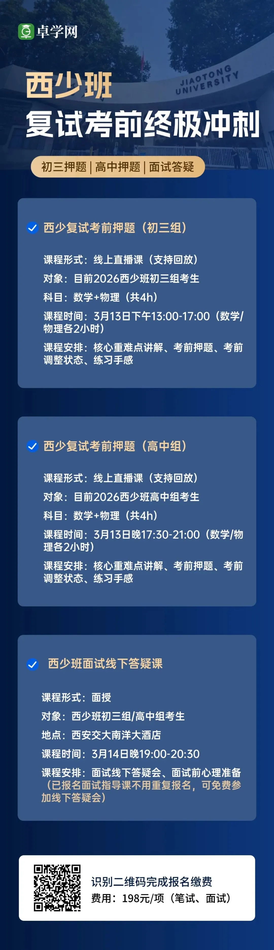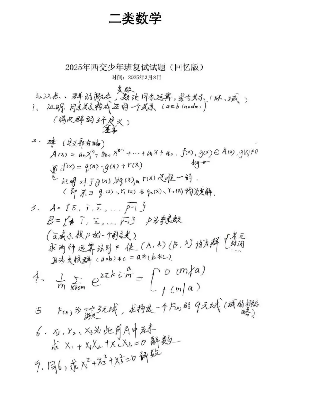 今年的送考群也安排上了!获得复试资格的同学请进群,届时我们将实时分享考试讯息,家长也可群里交流、探讨~2025西交大少年班复试真题