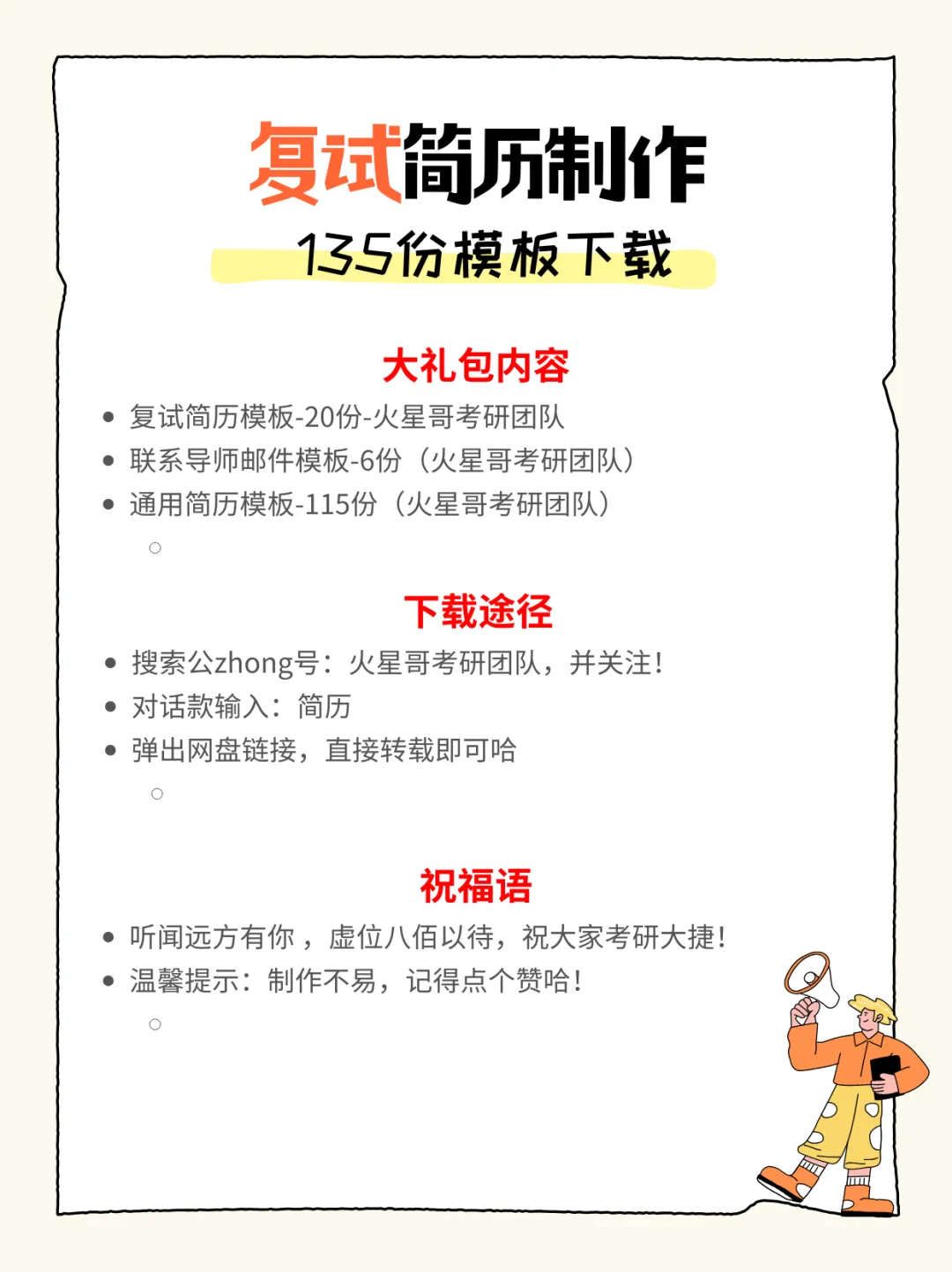 查完分,送上6份导师邮件模板+135份简历模板,分从四面八方来!