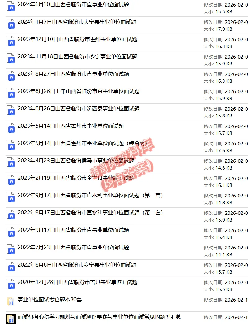 >山西临汾事业单位面试真题及答案逐字稿24套