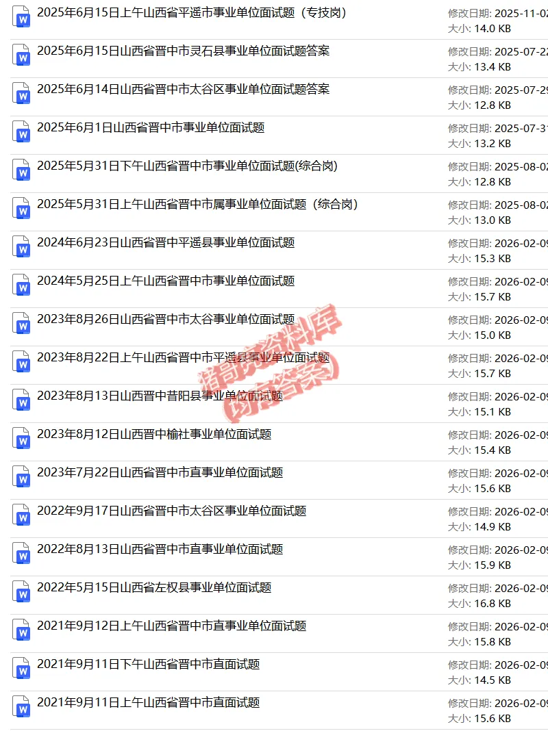 >山西晋中事业单位面试真题及答案逐字稿30套