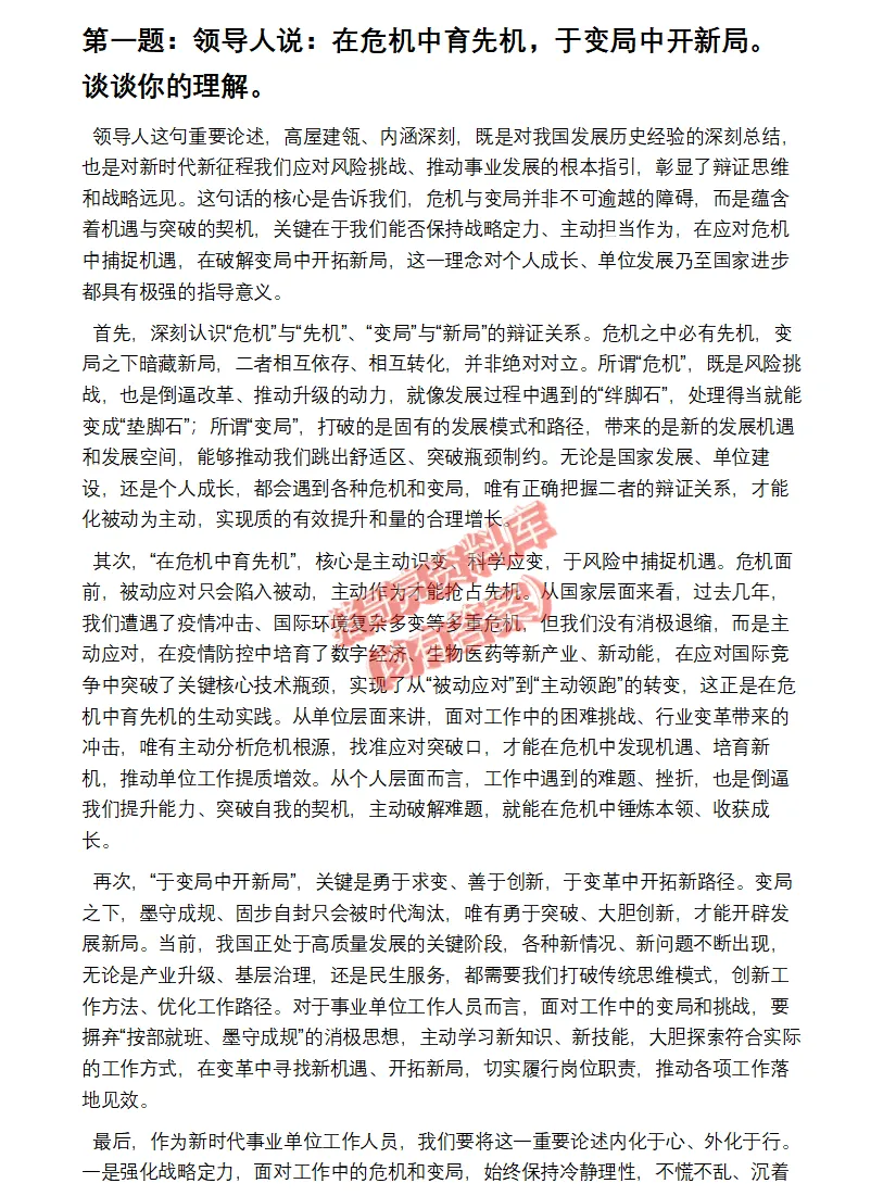 【广东省面】5月16日-面试真题原创高分解析(1)