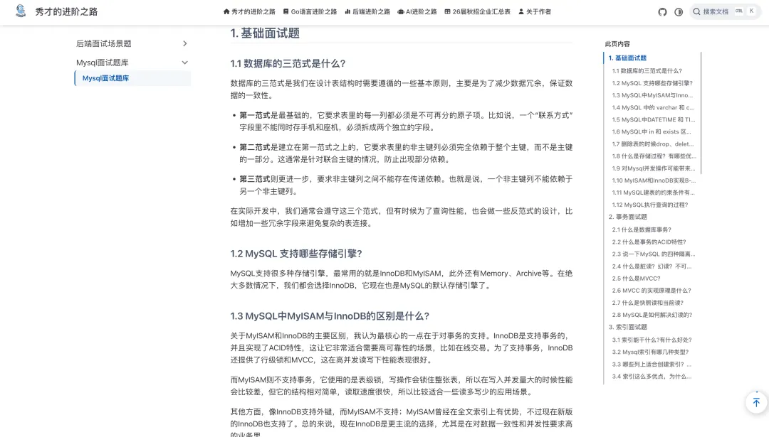 另外,秀才将这份面试题整理到了我的学习网站上:https://golangstar.cn/, 网站学习更高效哦!