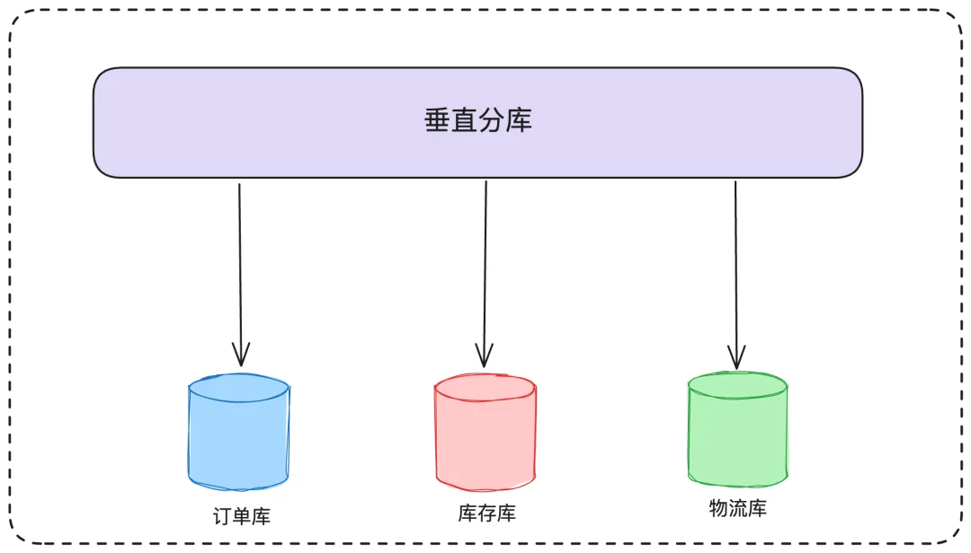 垂直分库:是按照业务维度来拆分。比如一个电商系统,可以把订单相关的表放到订单库,用户相关的表放到用户库,商品相关的表放到商品库。每个库负责一个独立的业务模块。