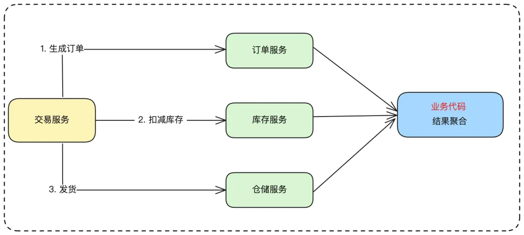 比如:对于一个交易服务可能涉及到订单库,库存库还有仓储库三个数据库,这里就最好通过微服务不同的接口去调用获取结果,然后在业务代码做聚合