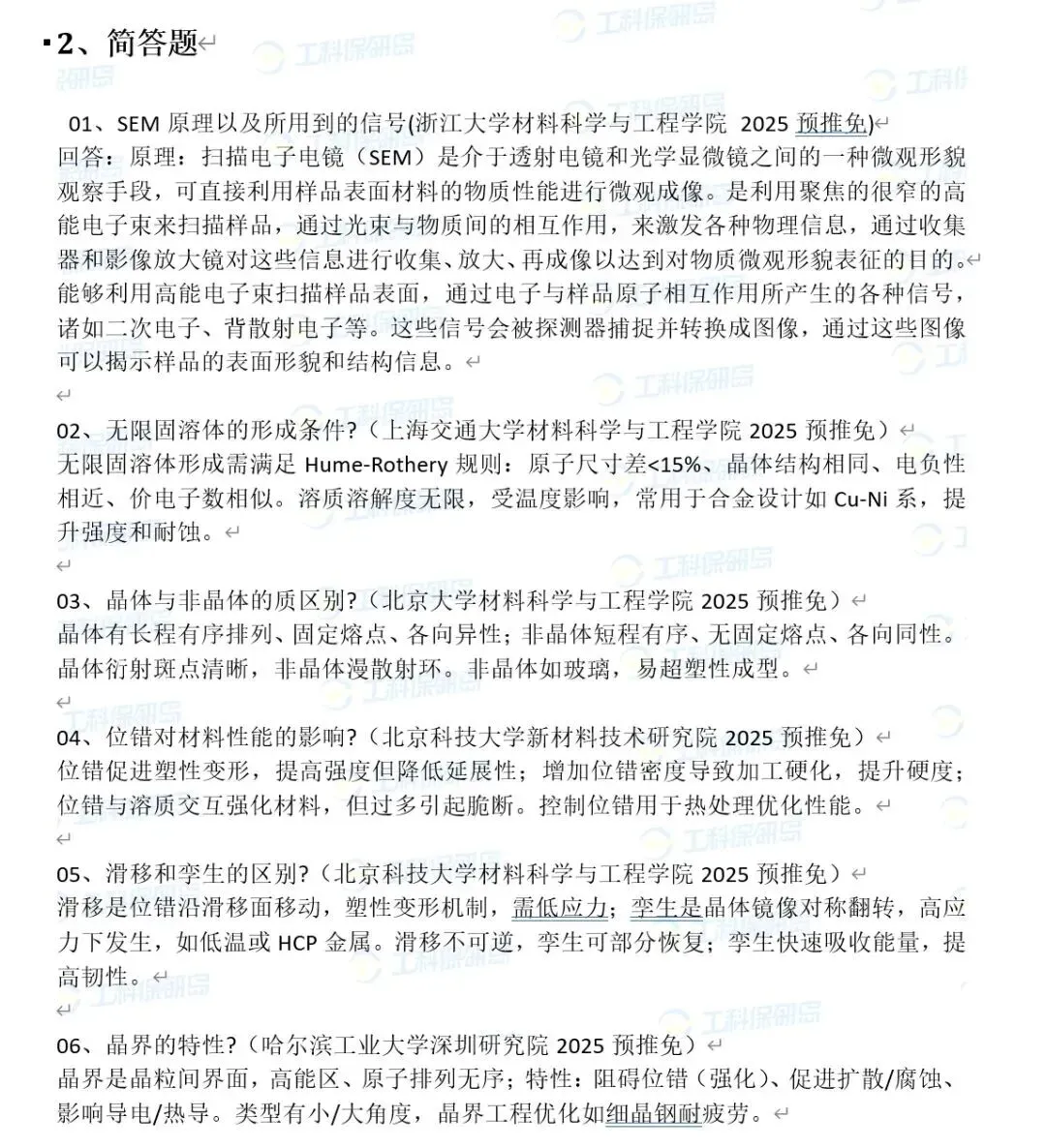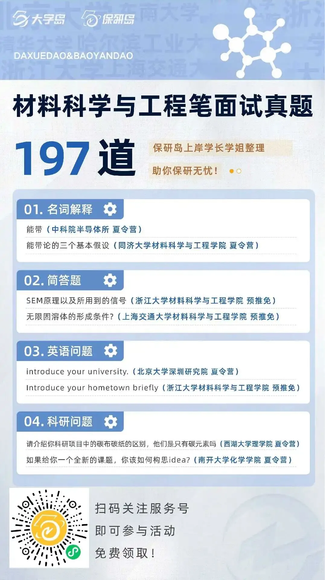 但是,材料科学与工程的知识点如此之多,一个知识点可能会在名词解释、简答题等题型中反复出现。并且,每所工科院所都有自己的出题风格和考察偏好,通过往年真题,尤其是近三年的真题,进而针对性地进行备考,可能会有事半功倍的效果!