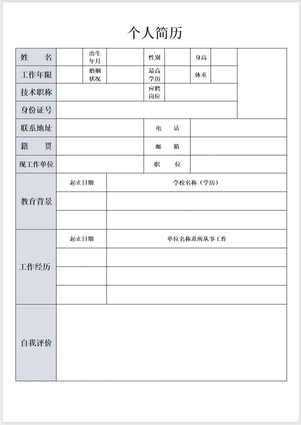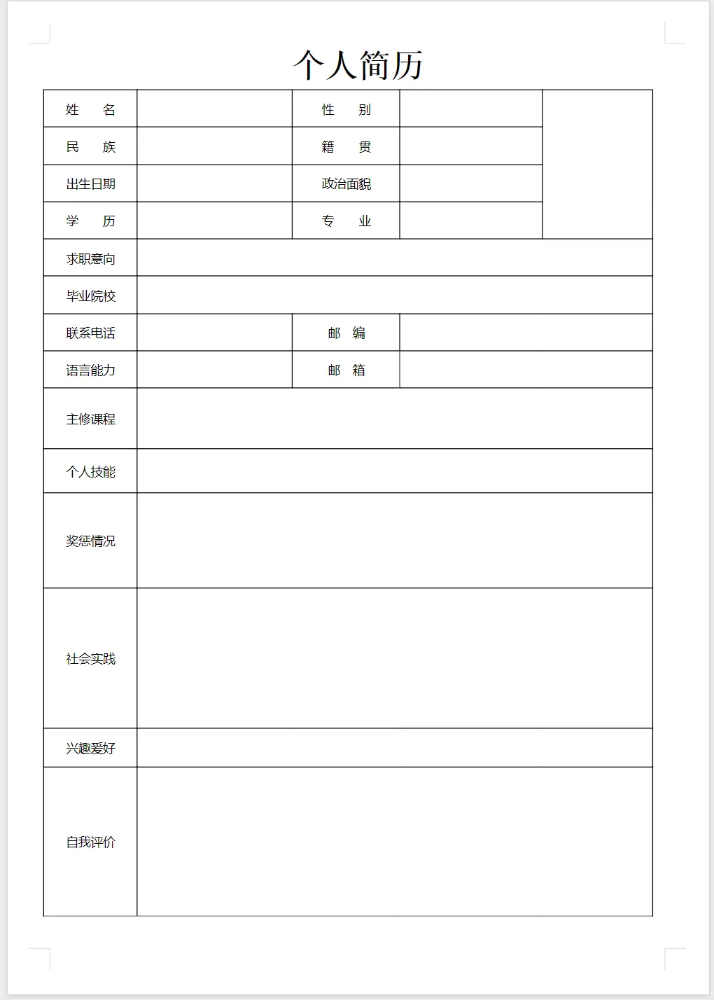 个人简历模板合集(word电子版)