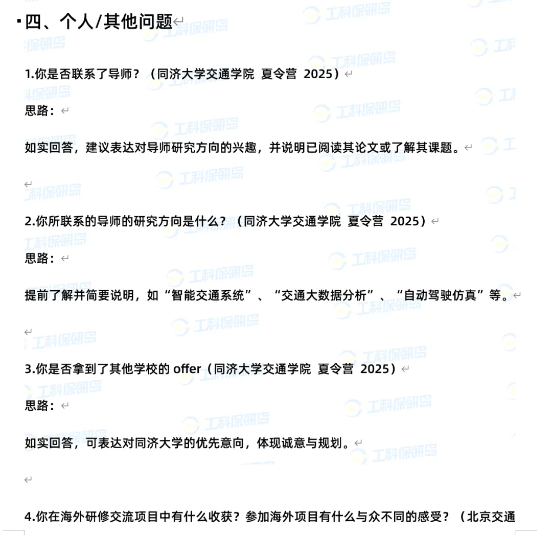 内含专业问题、英语问题、科研问题、个人问题四大板块