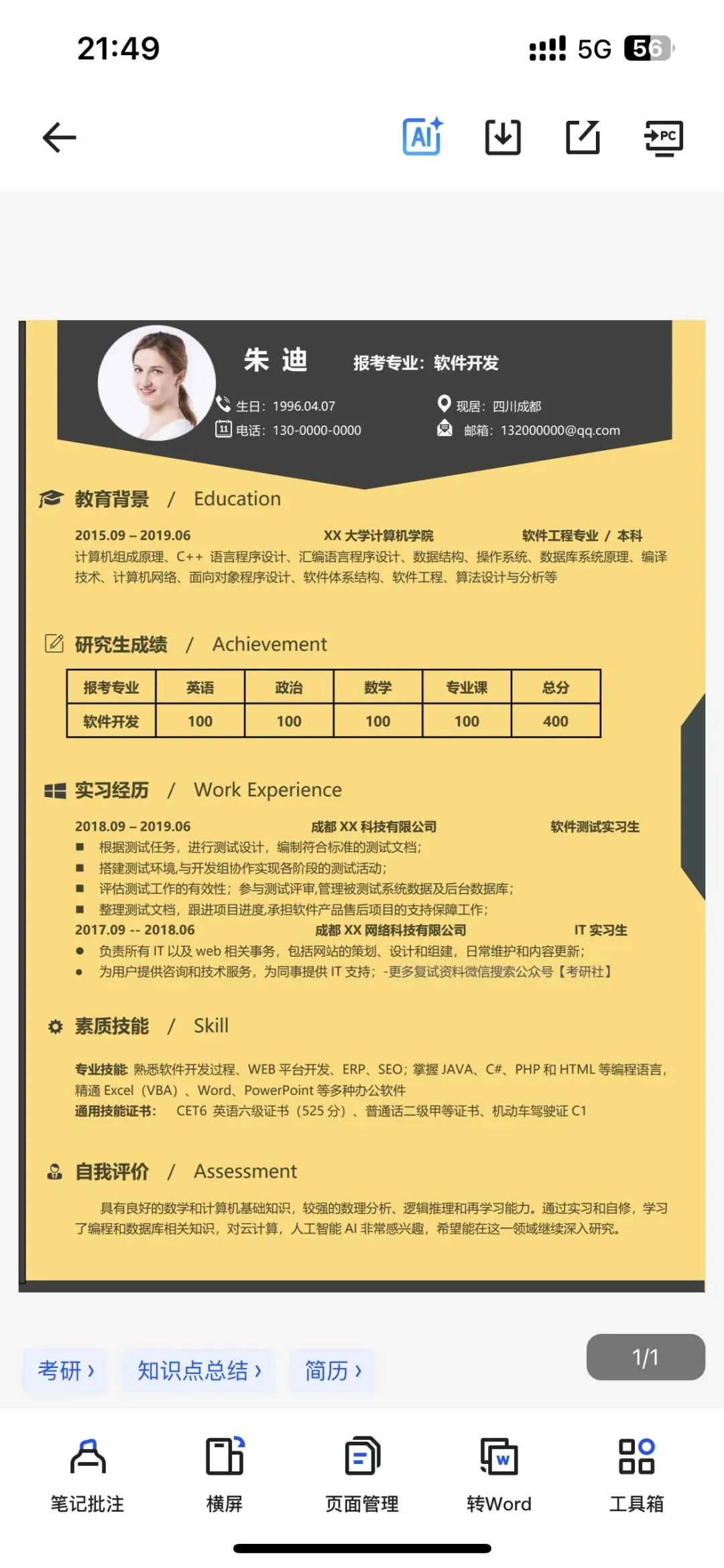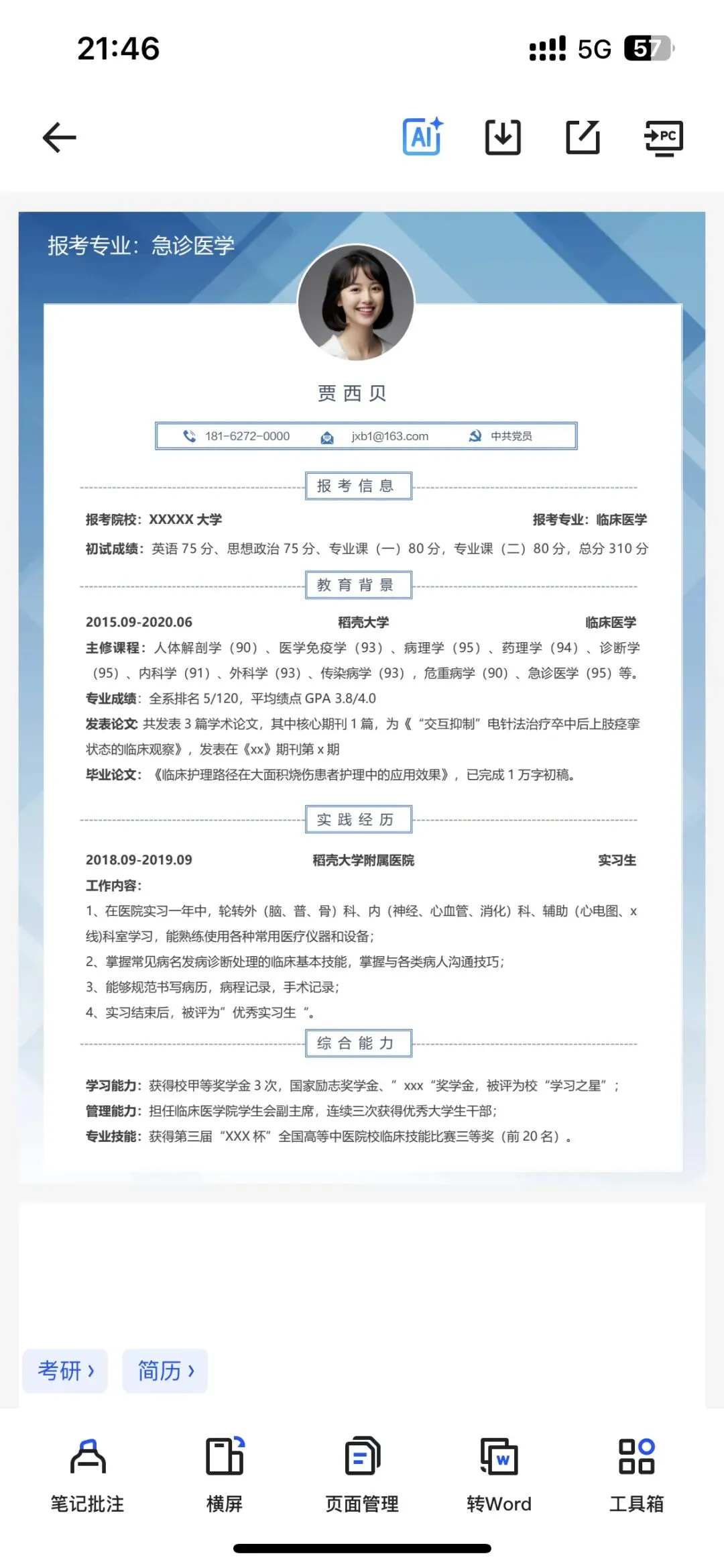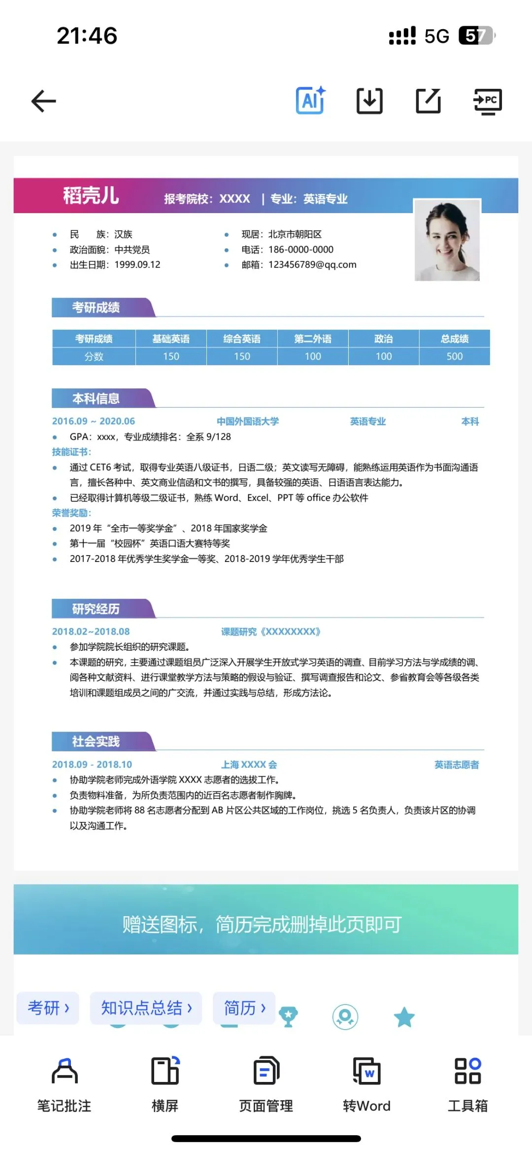 包含各个专业模板以及调剂模板,速速码住
