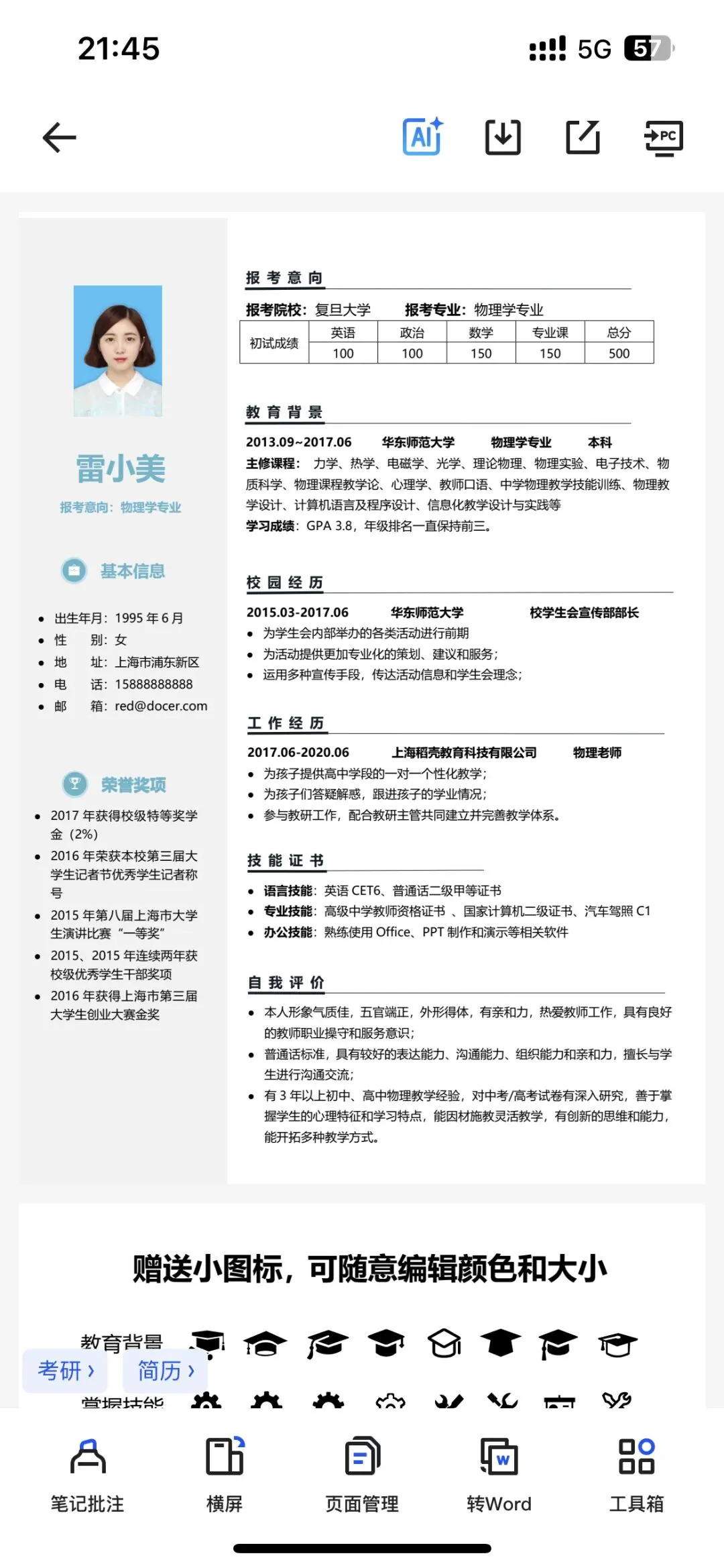 个人简历模板免费下载(电子版可在线编辑)
