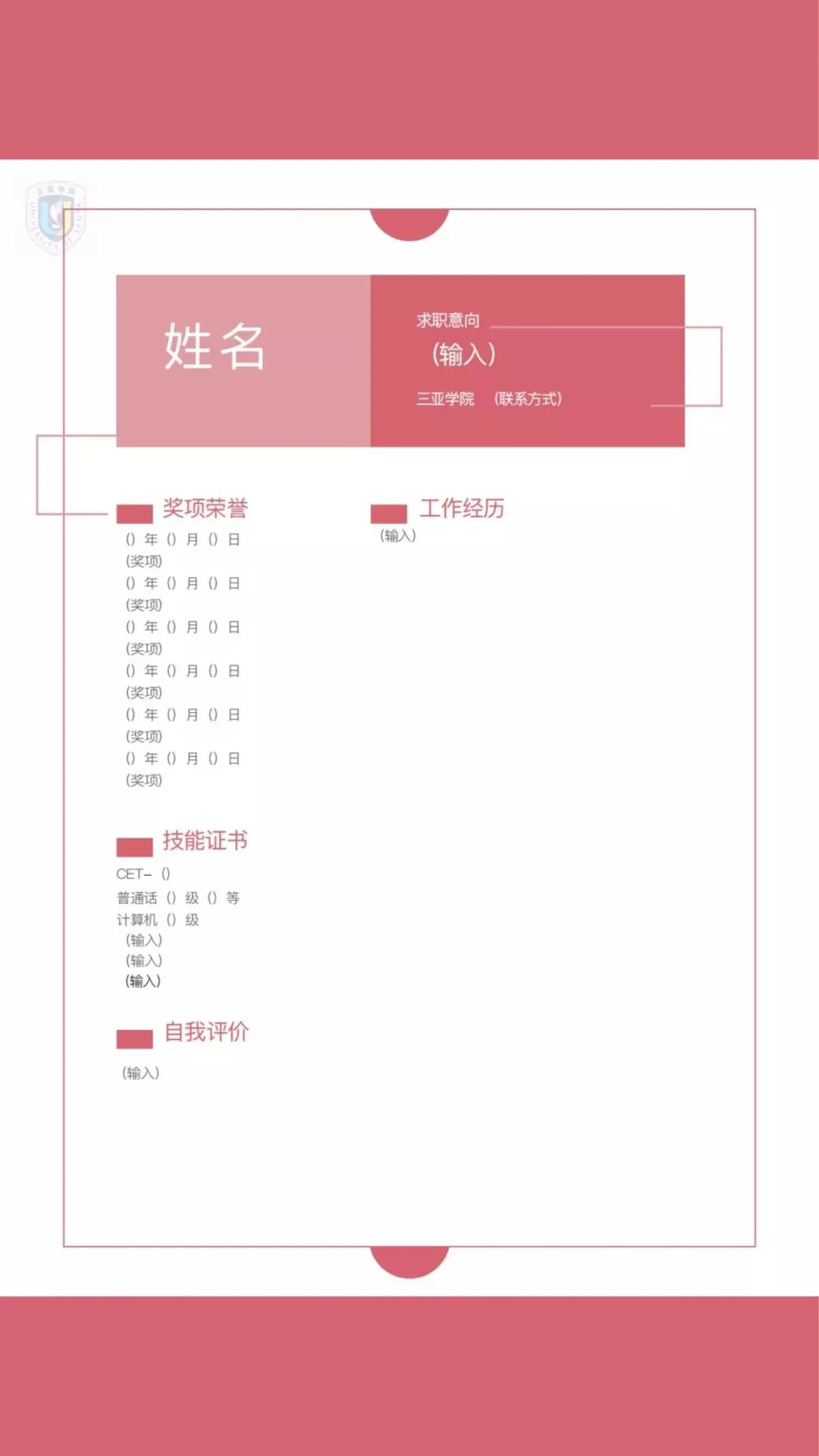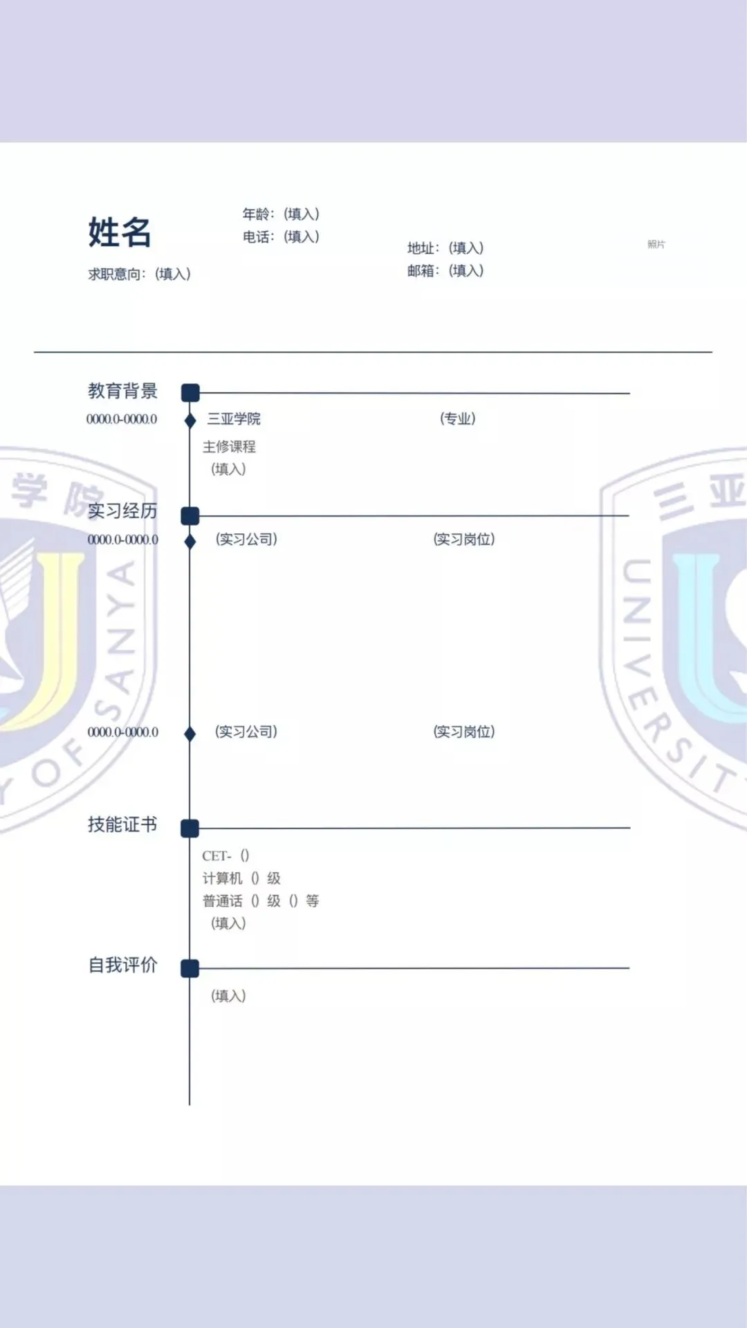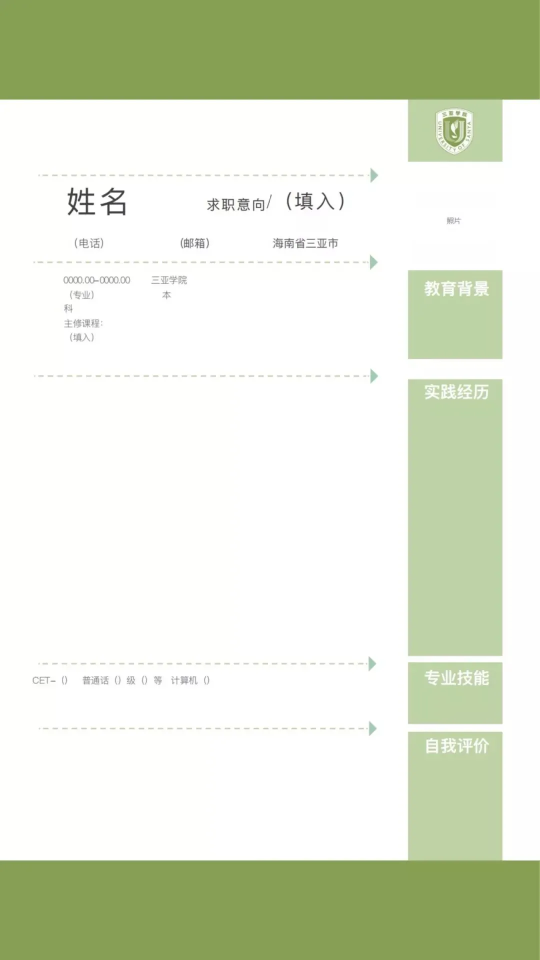 三亚学院专属简历模板请查收: