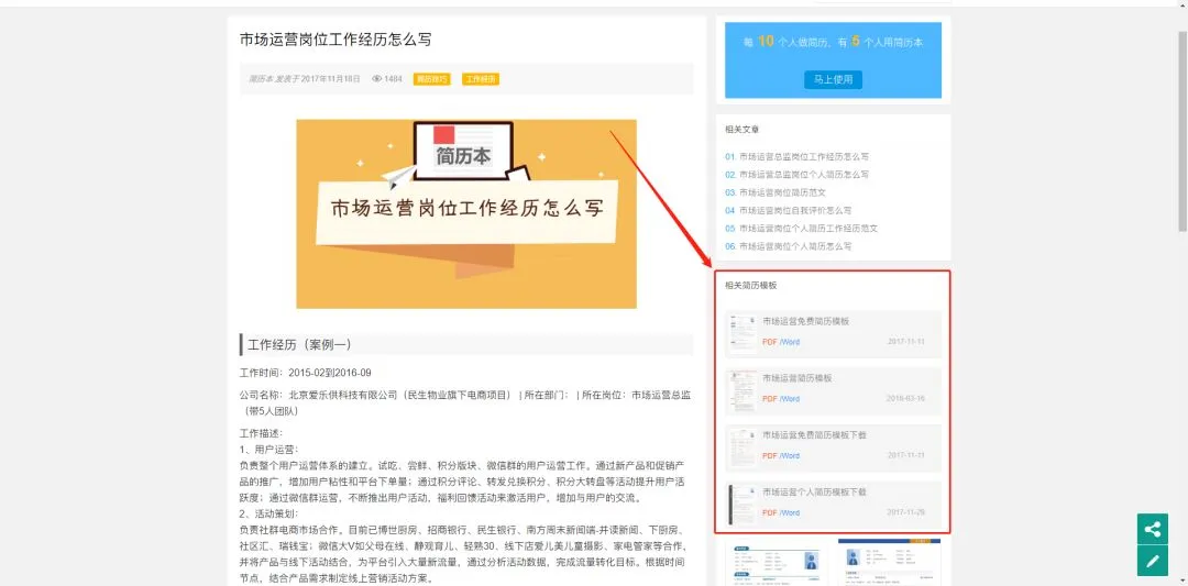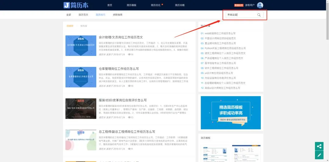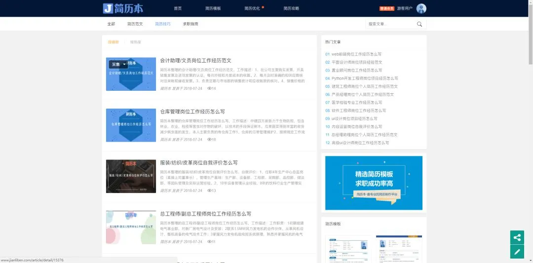 只需要进入网站的“简历攻略”一栏