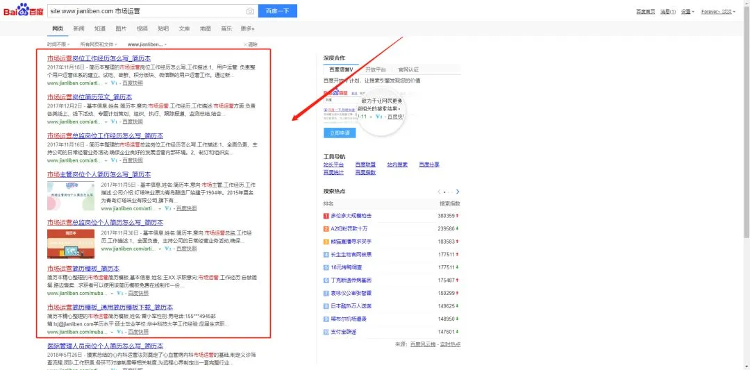 例如搜索“市场运营”