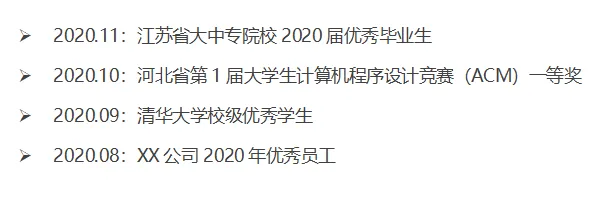 也可以是工作之后的,例如:X年优秀员工奖、X年难题攻关奖等等。