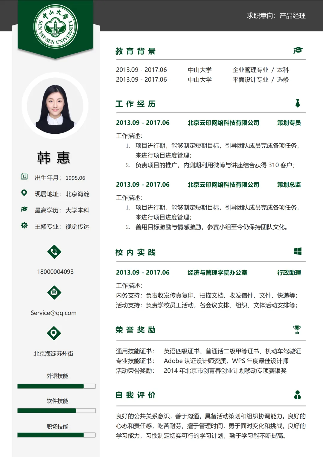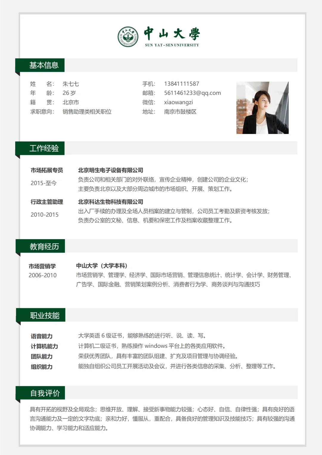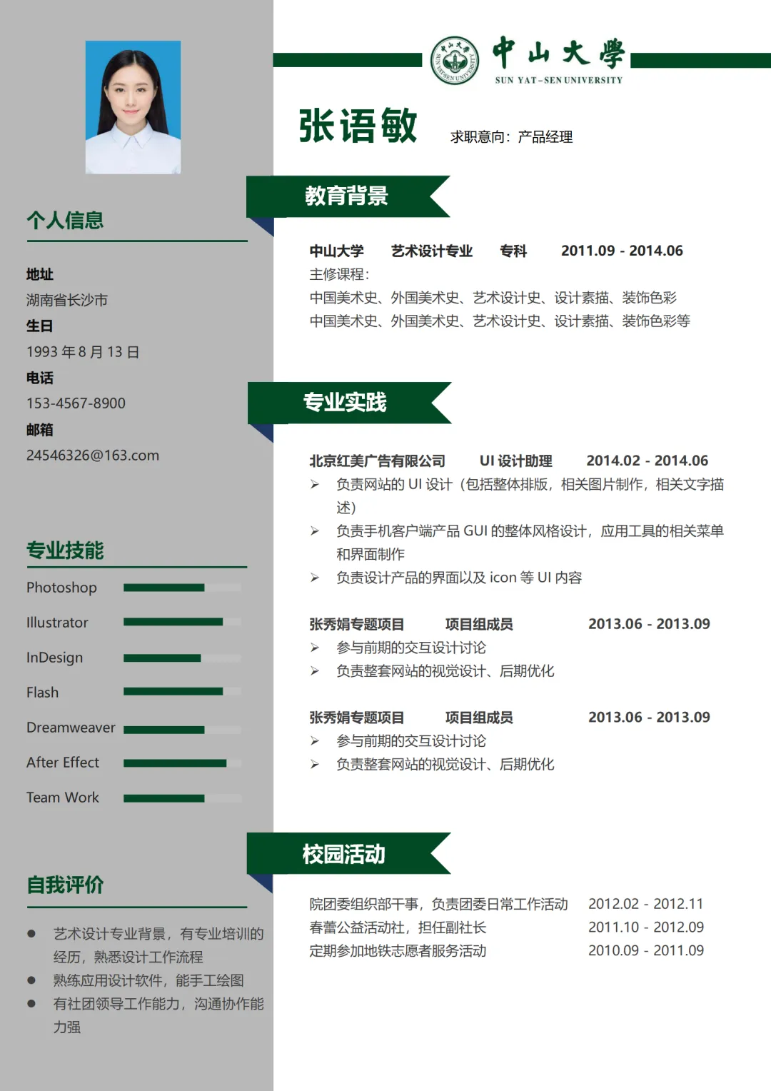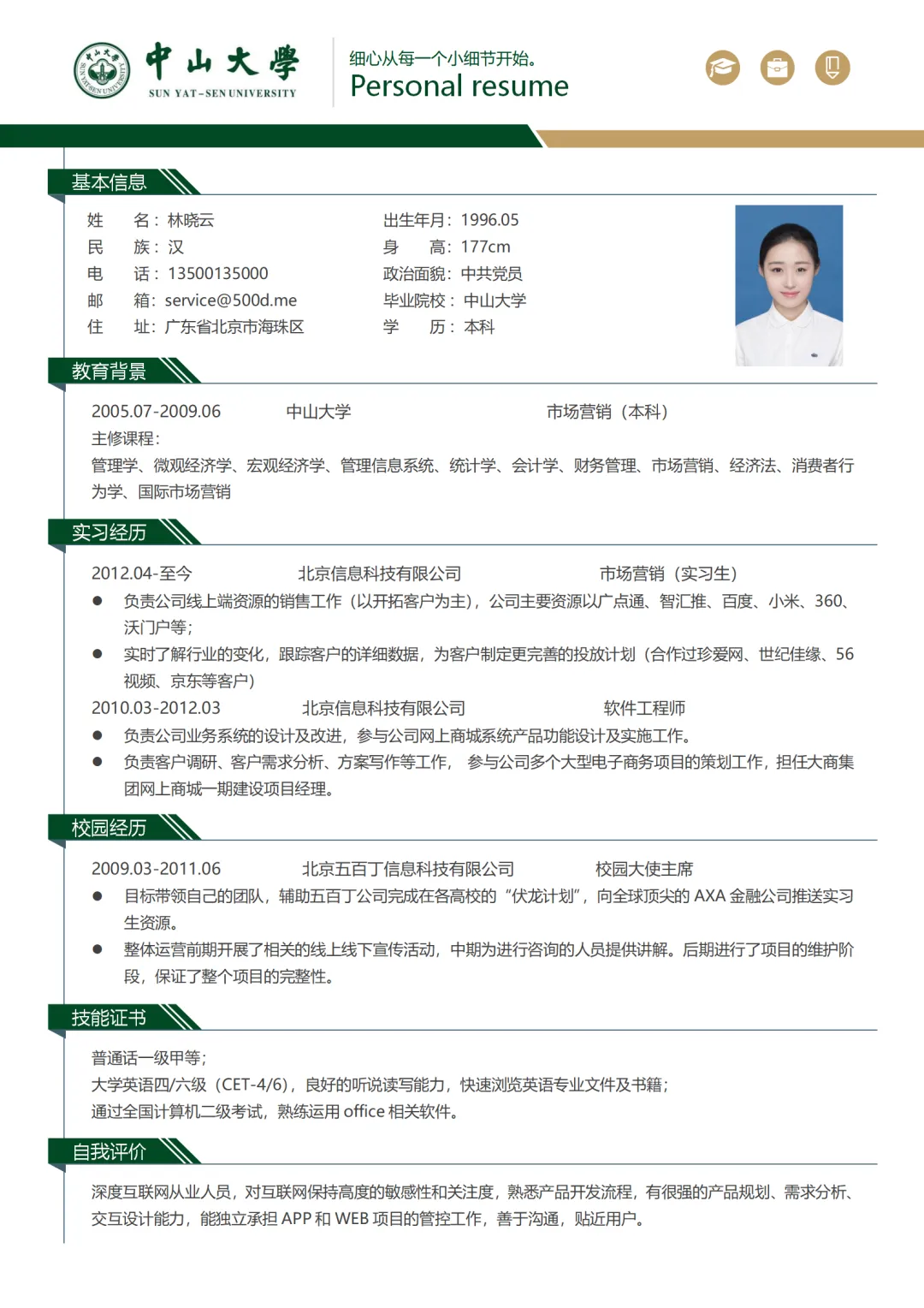 直接上中大专属简历啦~