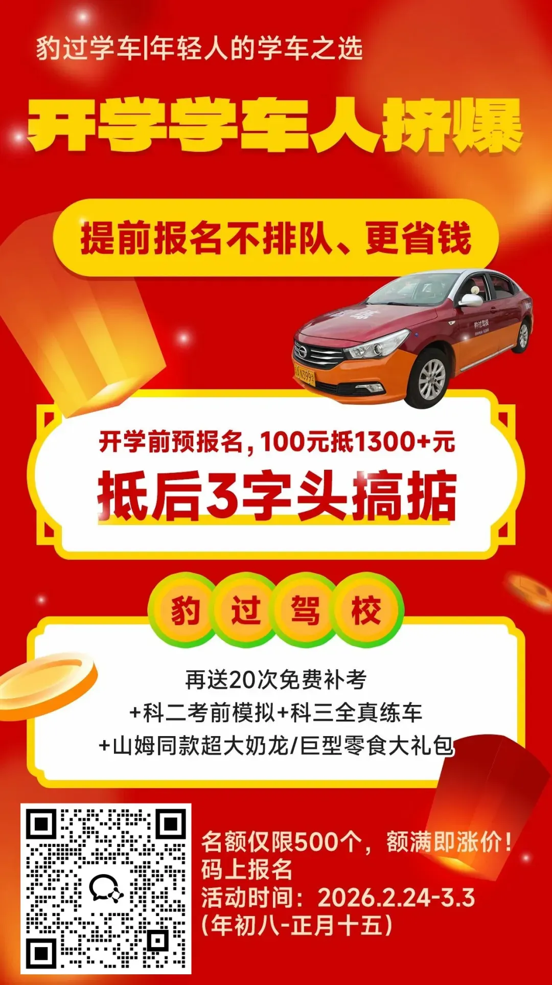 最新通知中大2026学车全年最低价另外鸭鸭还组织了十人大团预报名99定金立减1300+送科二科三考前模拟送20次免费补考还送超大奶龙/零食大礼包