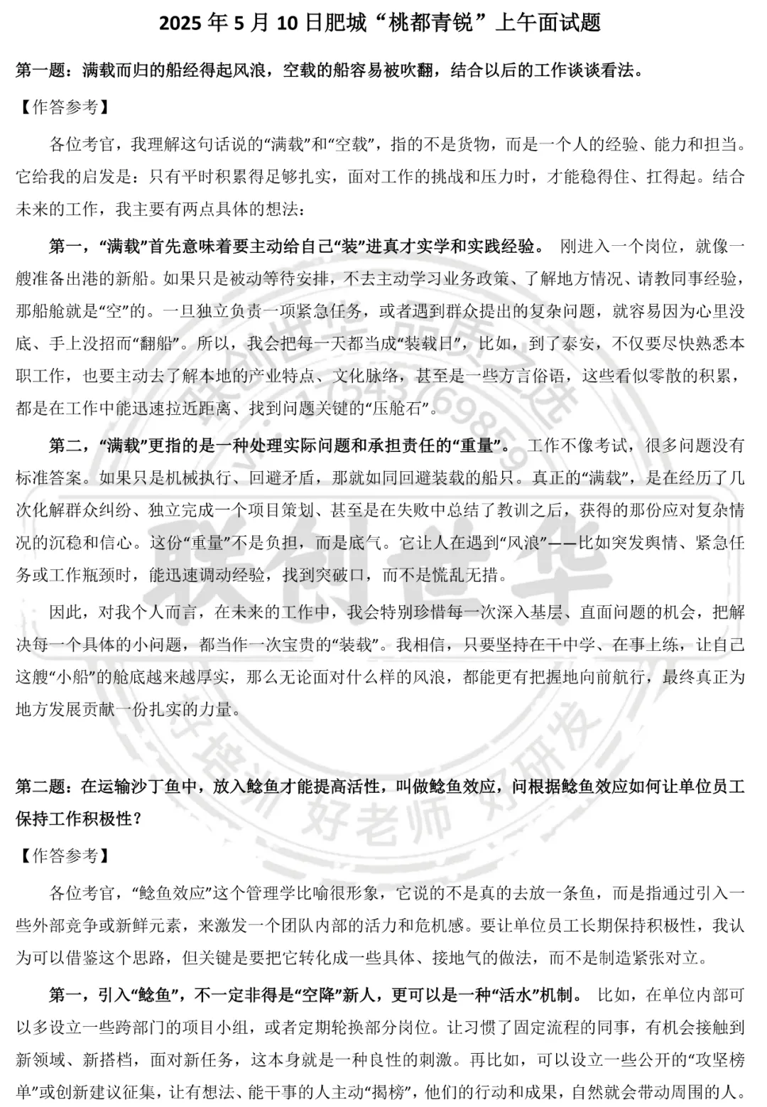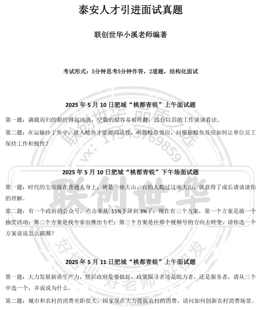 【人才】泰安人才引进“桃都青锐”面试真题汇总及逐字稿