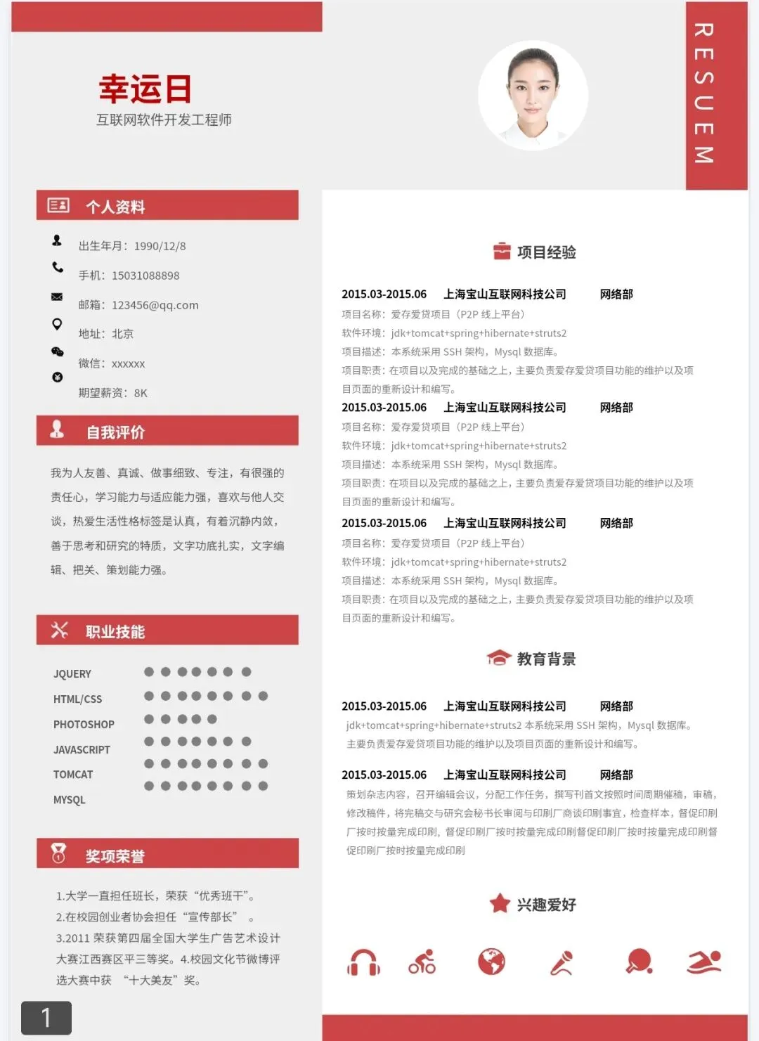 本文分享的是:500套+个人简历模板合 计个人简历模板