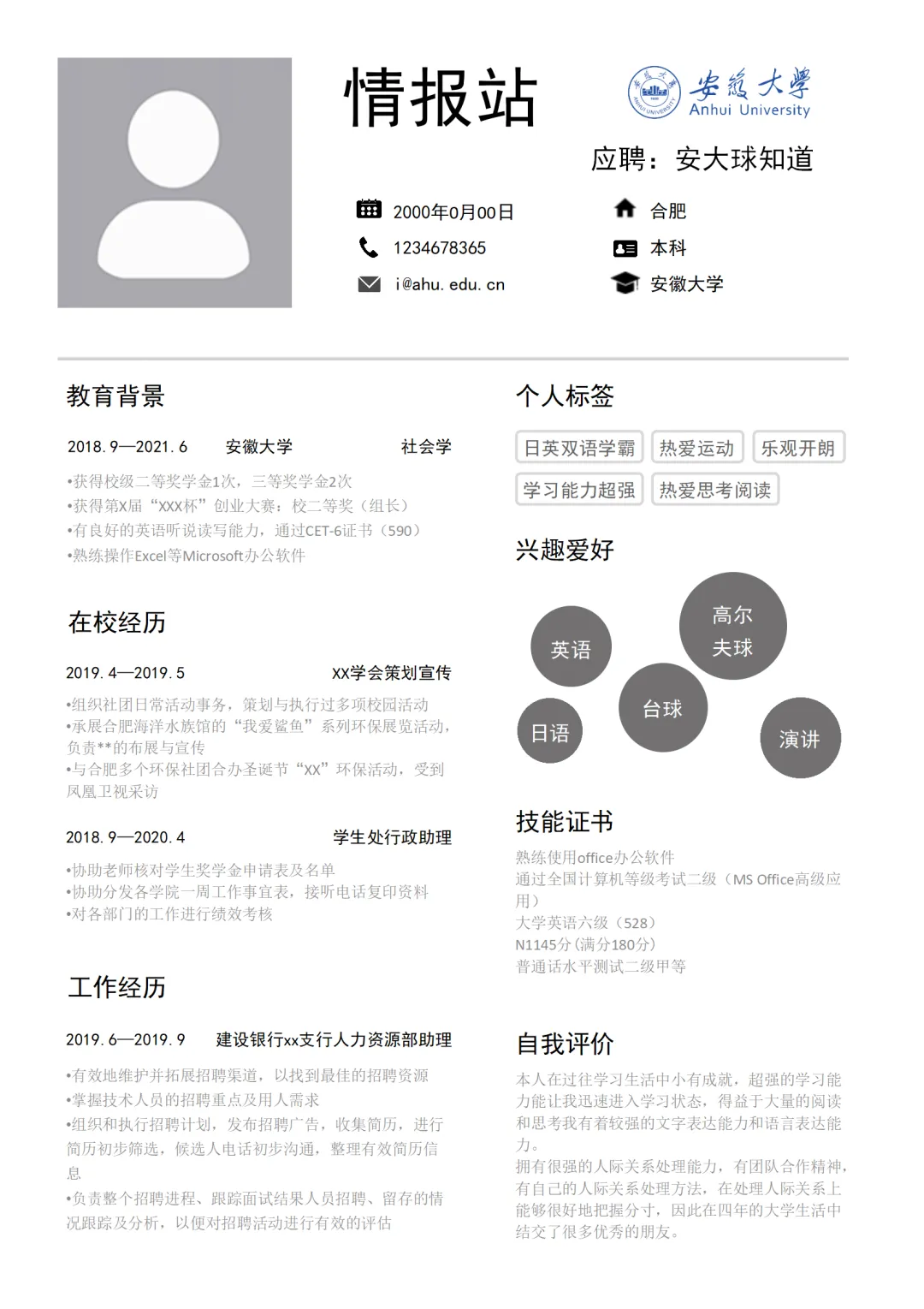 【无偿分享】个人简历模板 (word电子版) 免费保存下载