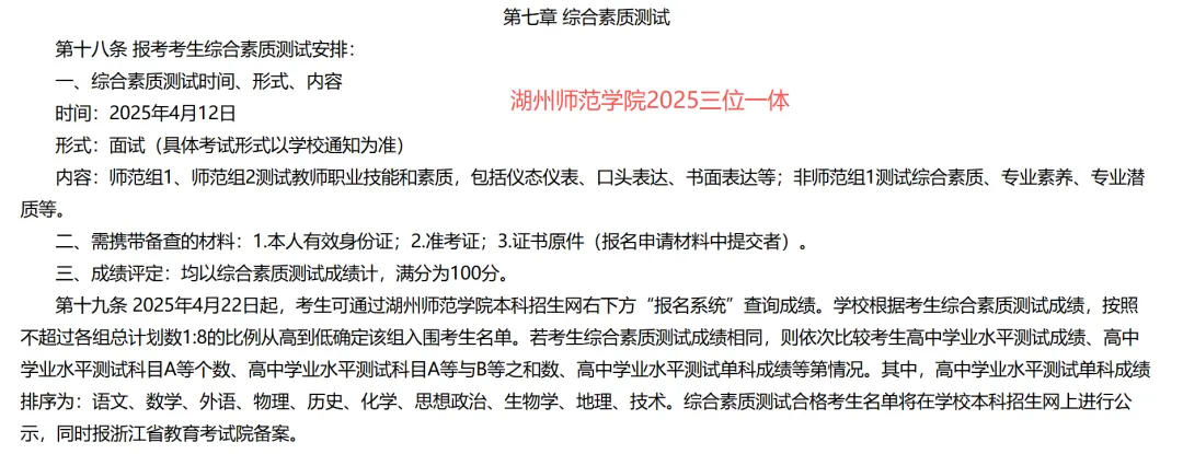 >2025 年湖州师范学院三位一体面试真题