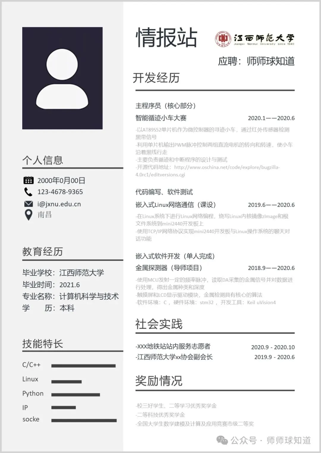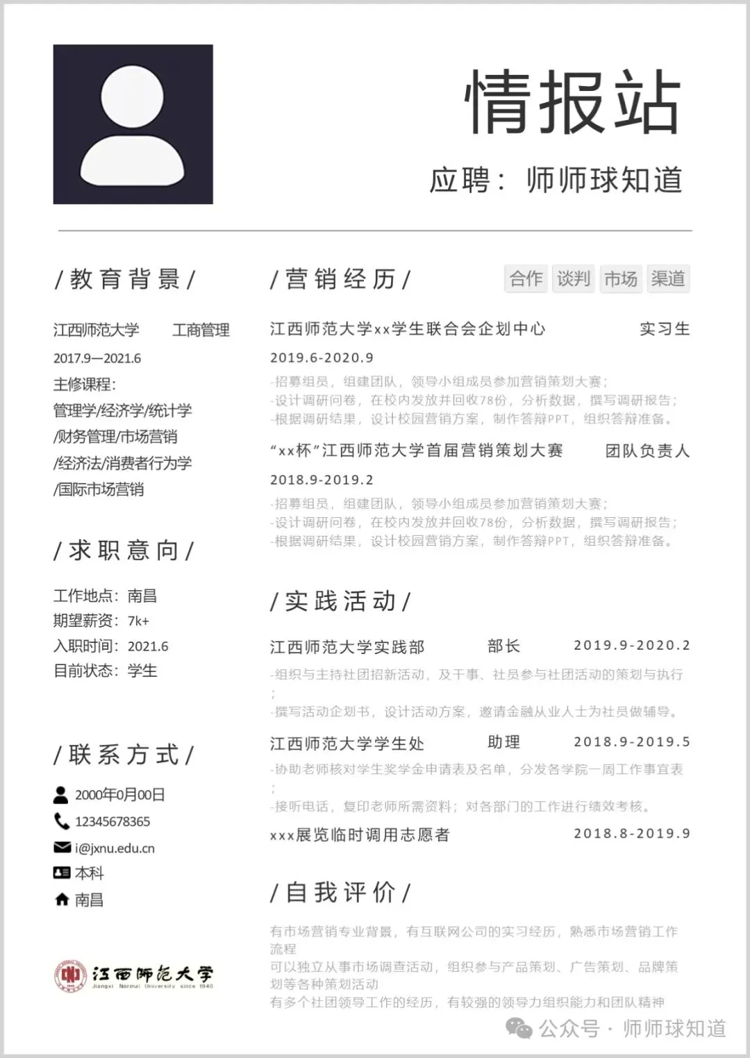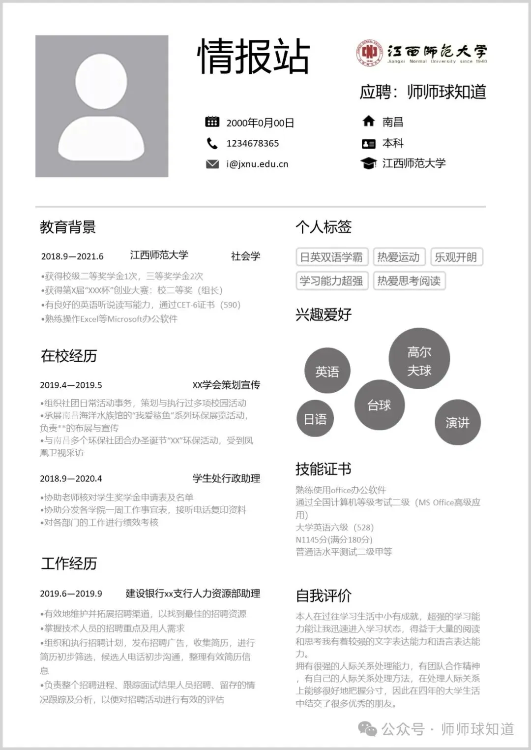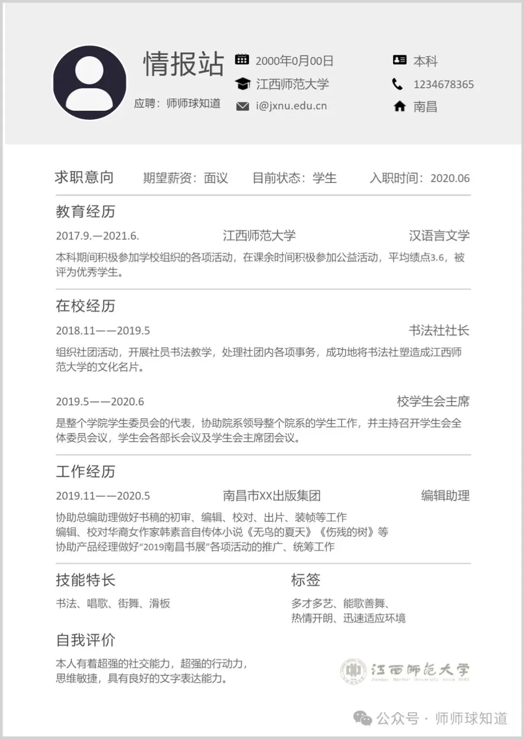 江西师范大学专属简历模板