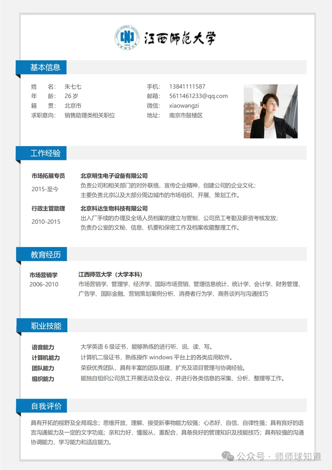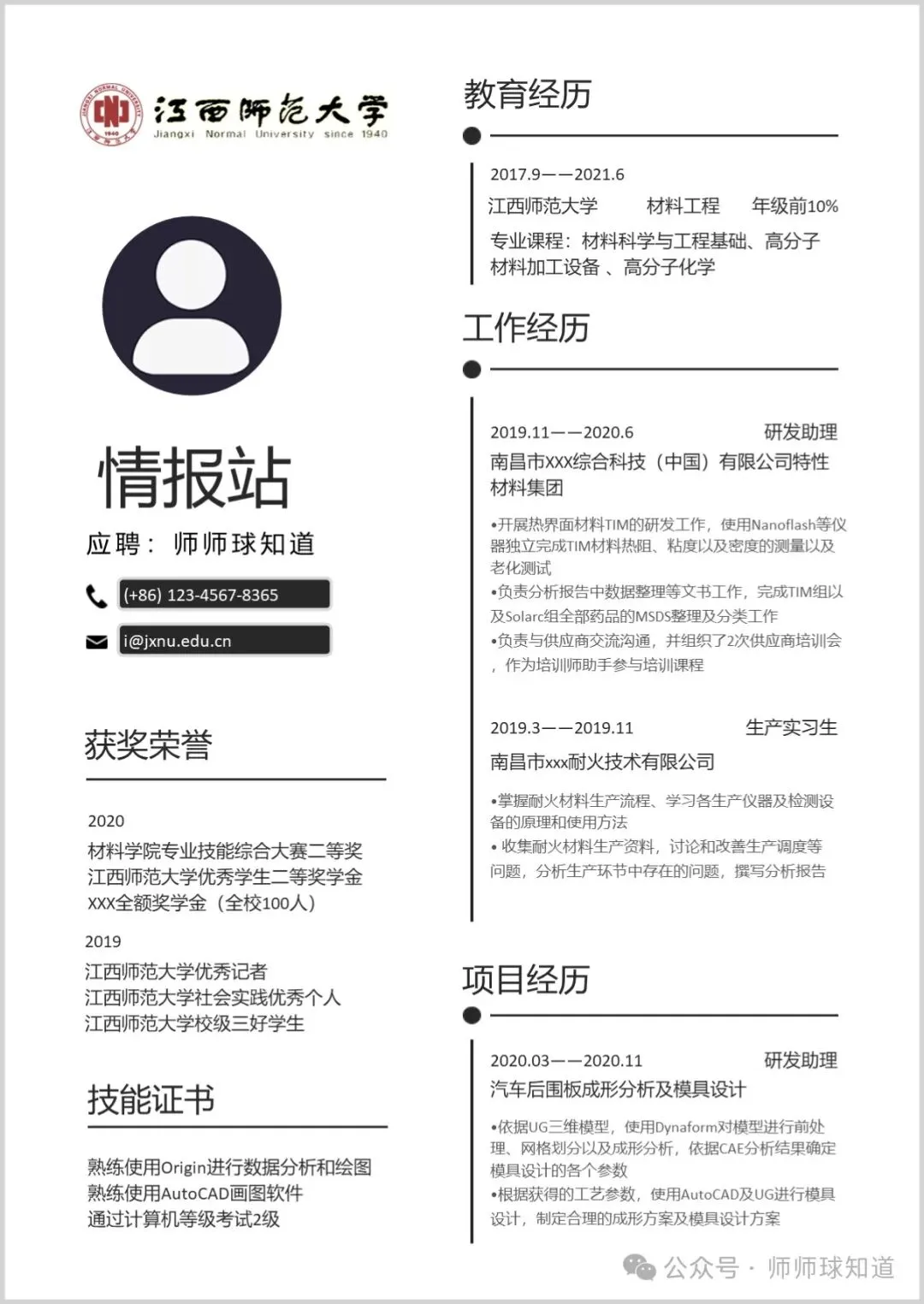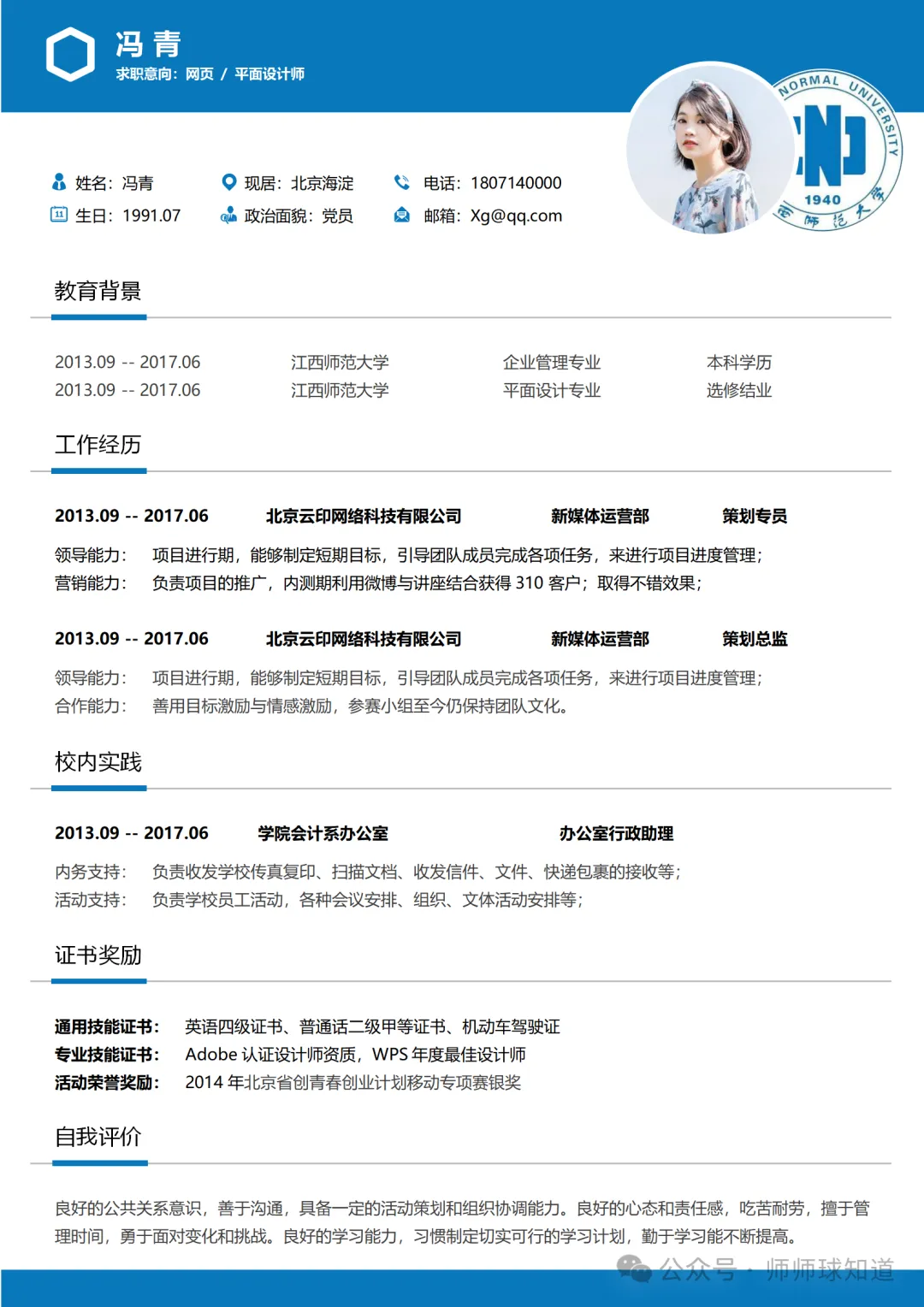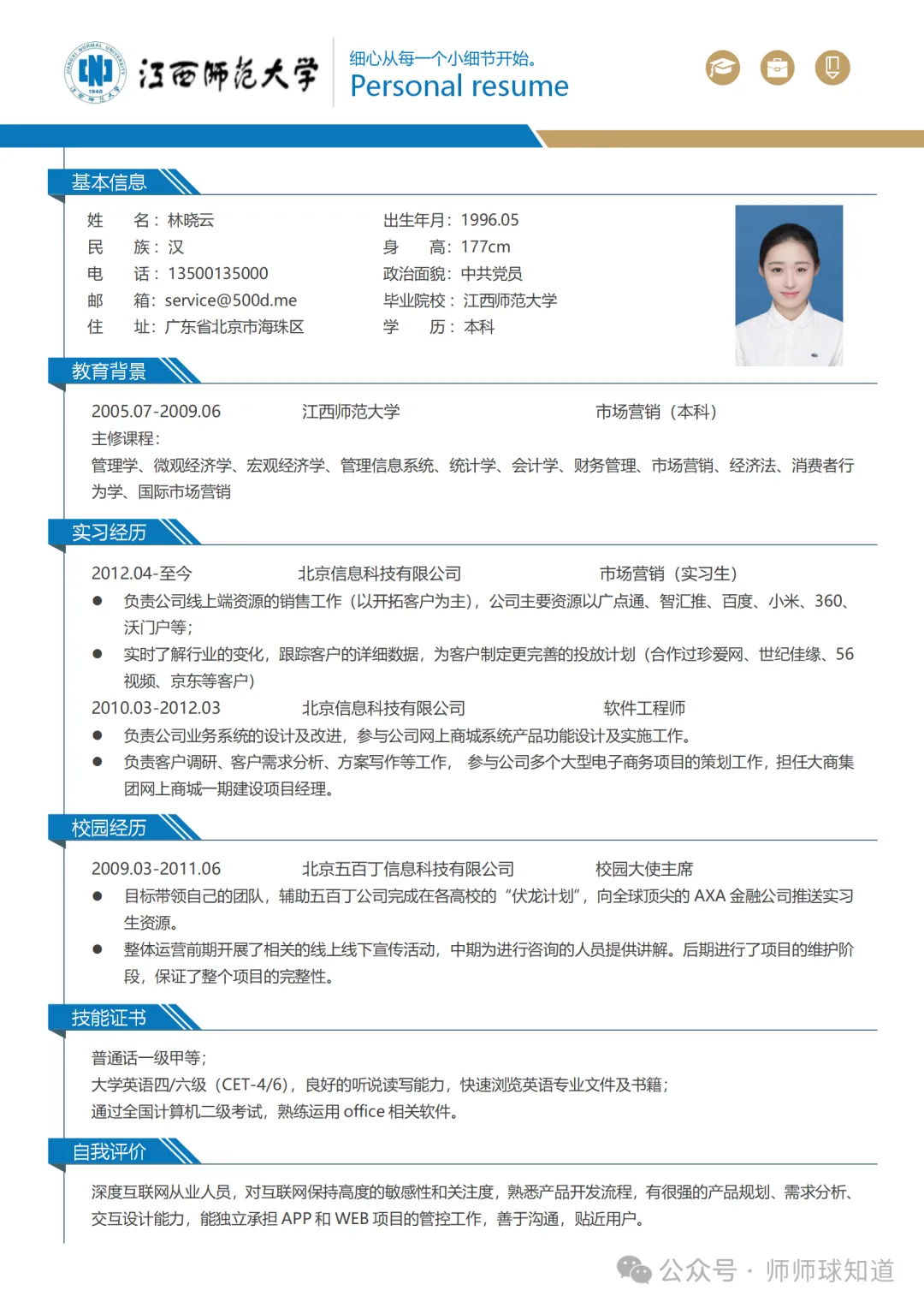 江西师范大学专属简历模板
