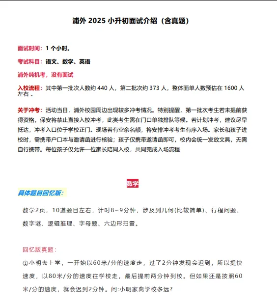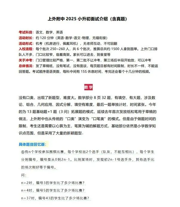 2025年上海三公——上外附中面试真题:
