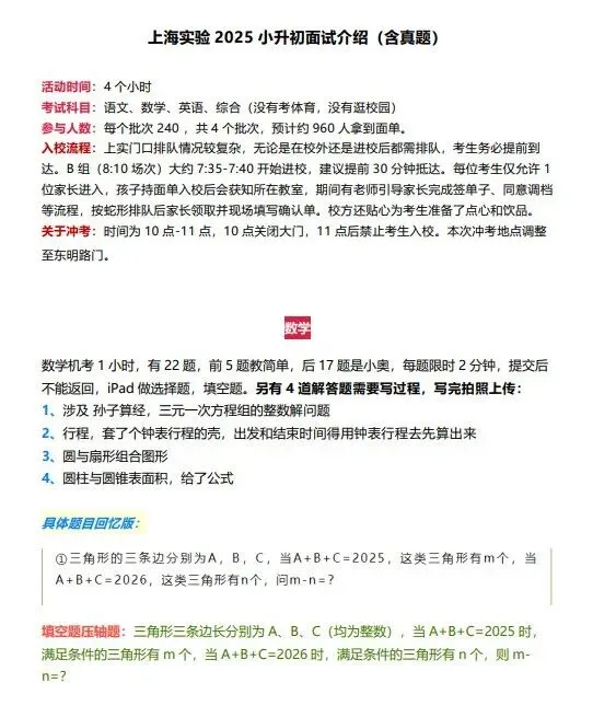 2025年上海三公——上海实验面试真题: