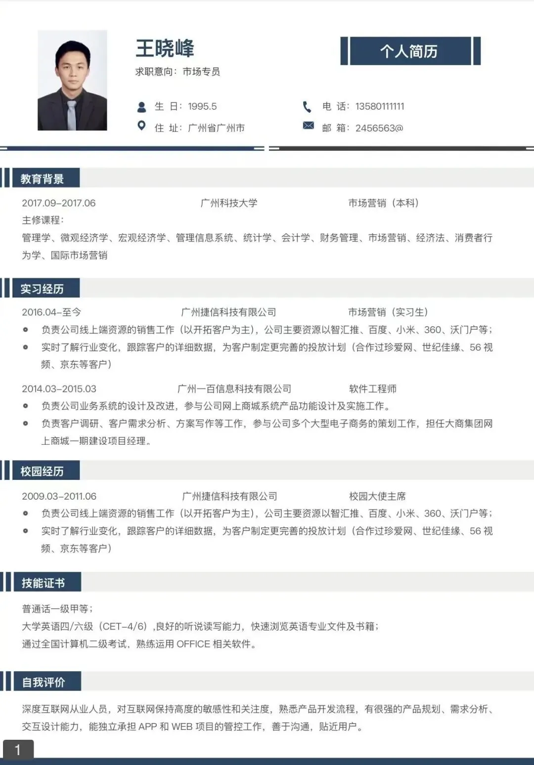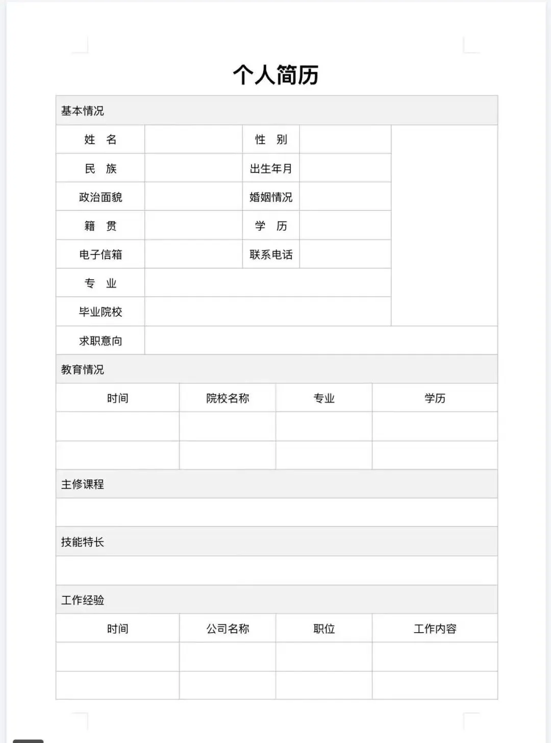 个人简历模板合集(500+份,word电子版,免费分享,可修改)