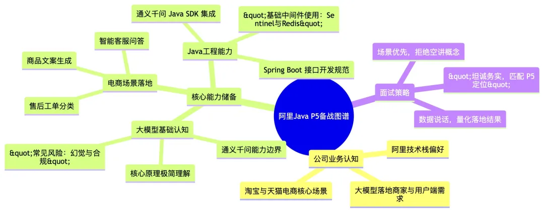 技术栈上,阿里内部核心以Java生态为主,Spring Boot/Spring Cloud Alibaba是标准开发框架,大模型优先使用自研通义千问,配套Sentinel限流、Nacos配置中心、Arthas问题排查等开源组件,完全是阿里系的技术闭环。文化上,P5级别的核心要求是基础能力达标、能上手干活、有成长潜力,不需要你是算法大牛,但必须务实、有结果意识,能配合团队完成AI功能模块开发。