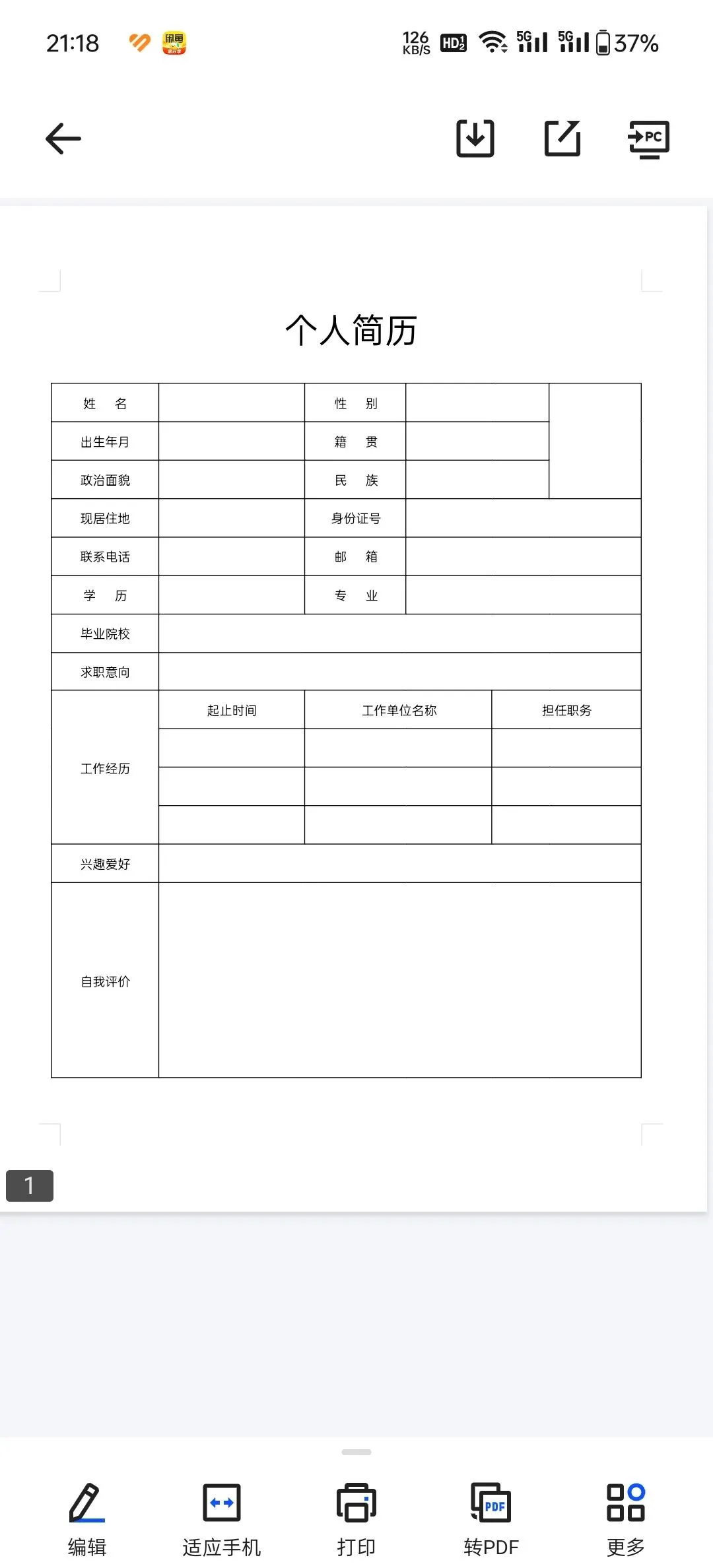 个人简历模板合集(500+份,word电子版,免费分享,可修改)