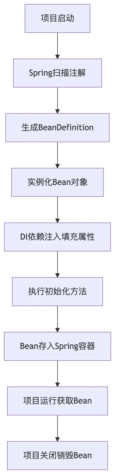 为了直观理解 IoC 容器的完整工作流程,整理了 Spring Bean 生命周期与依赖注入流程图: