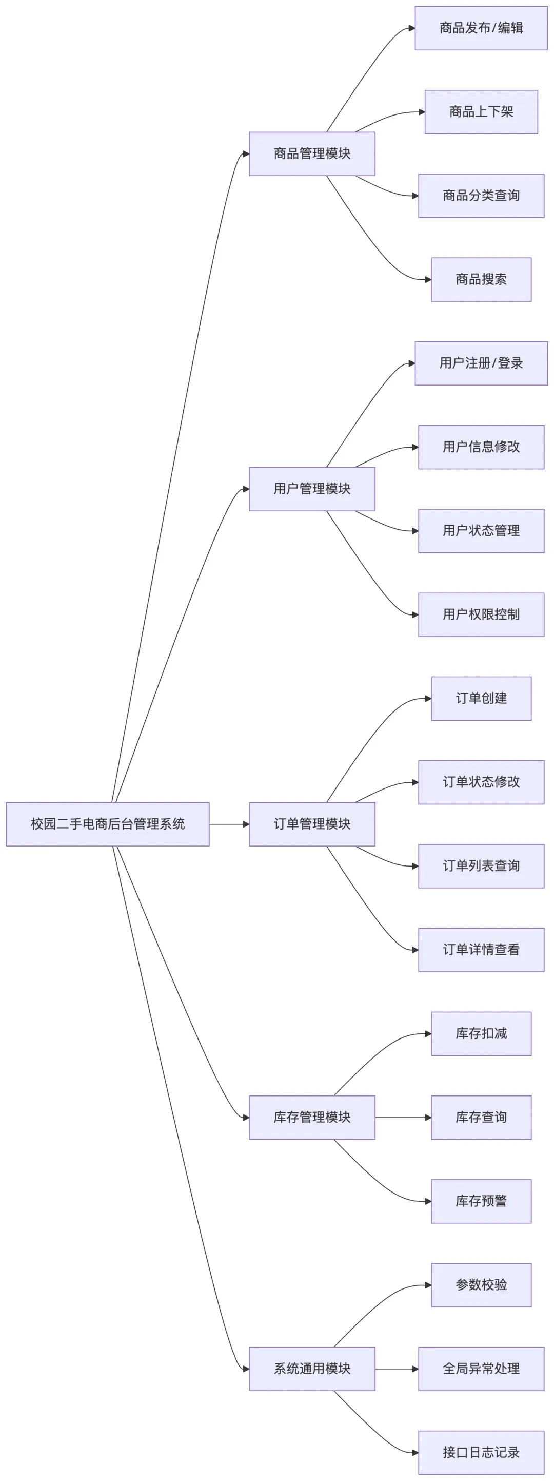 整理校园二手电商系统的整体模块架构图:
