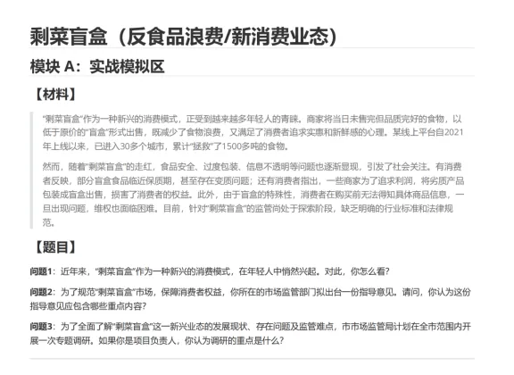 ✅ 对应我们的模拟题:剩菜盲盒(反食品浪费/新消费业态)+ 对接类题目