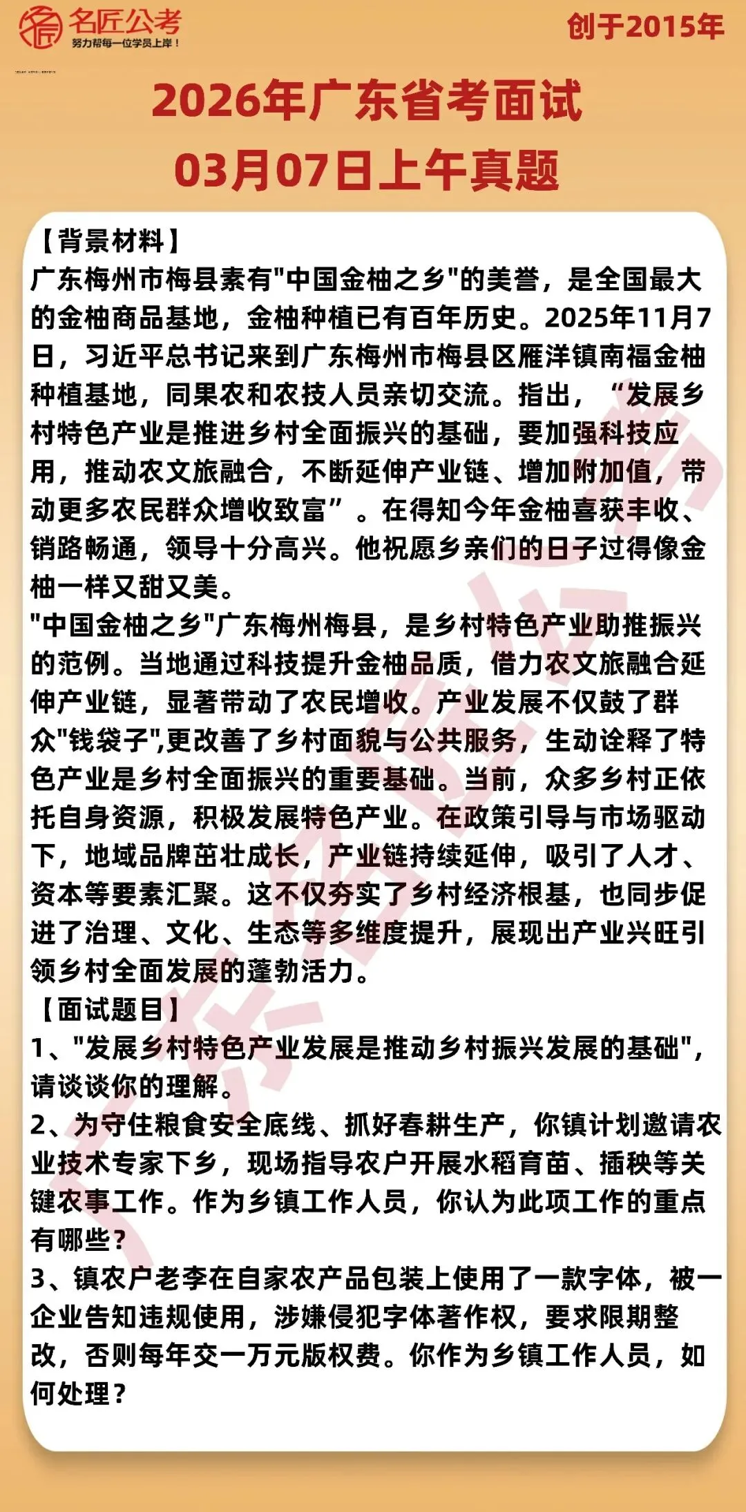又双叒叕押中了!3月7日广东省考面试真题指哪打哪