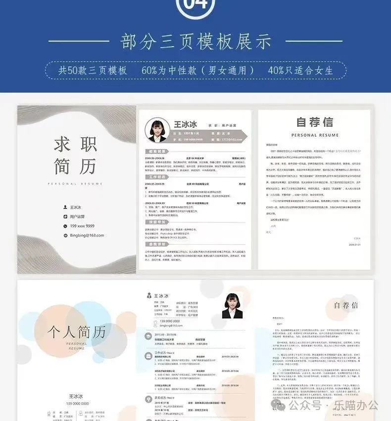 包含各种风格,我相信总有一款适合你,有中文简历、一页纸简历、求职信、英文简历、两页纸简历、封面和表格等多种简历模板,保证让 HR 看得心花怒放。