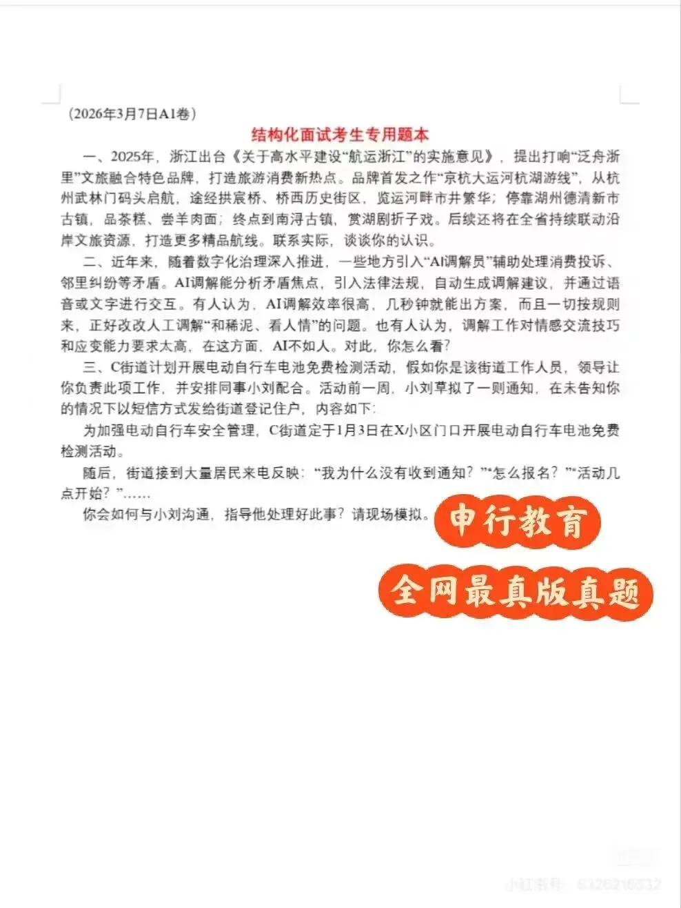 2026年浙江省考面试-3月7日A卷(全网最真版真题)