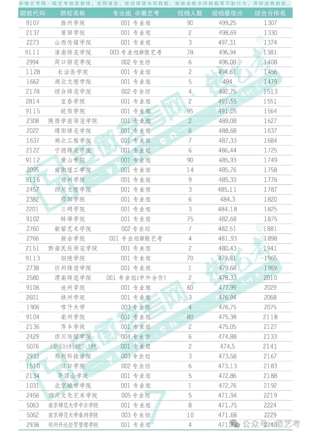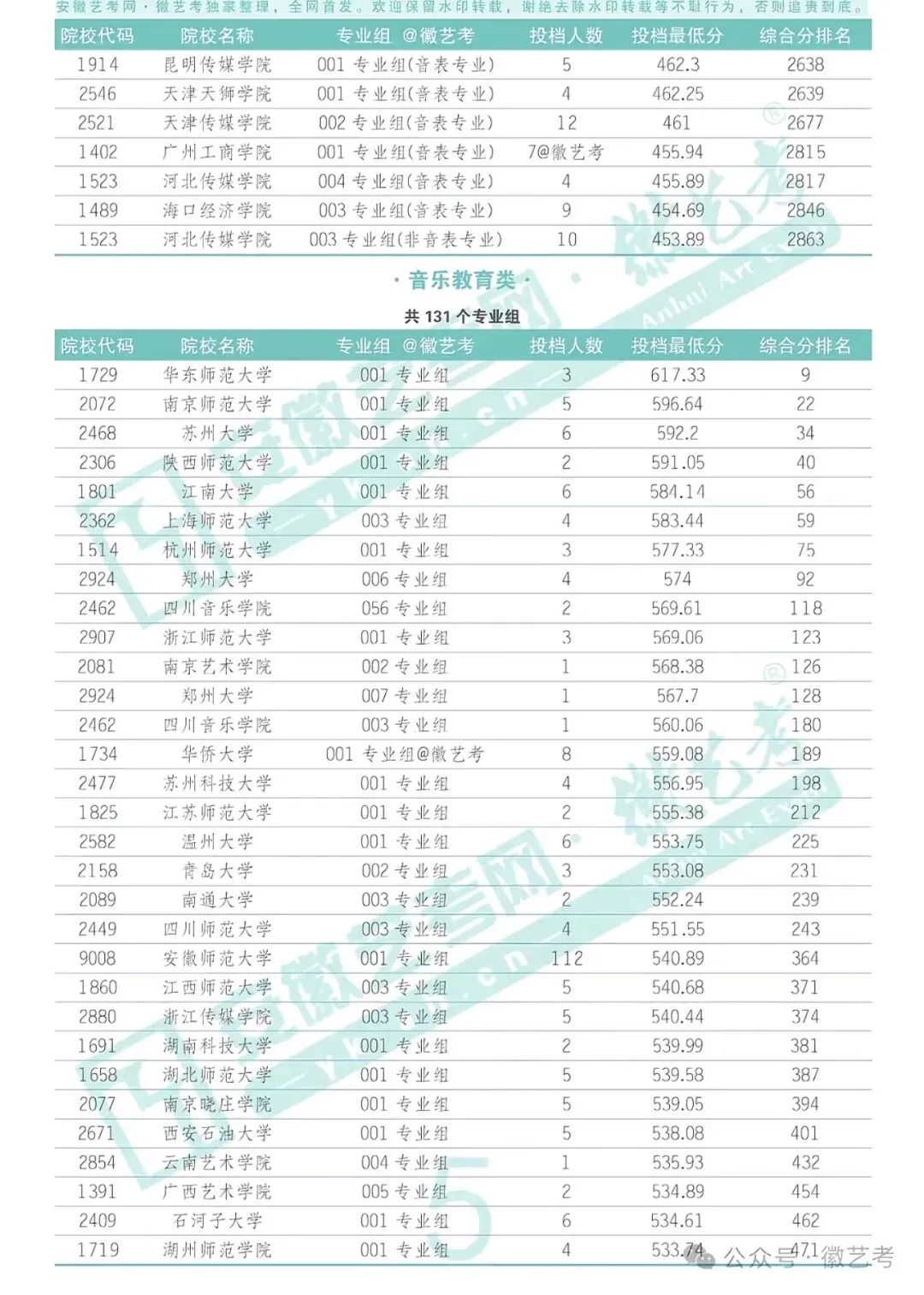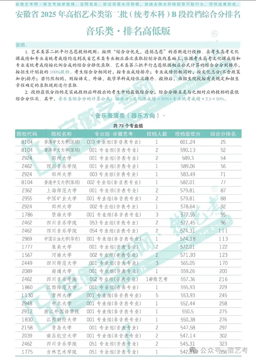 2025安徽音乐类(器乐)B段投档分排名完整版!