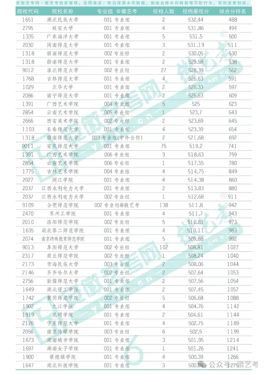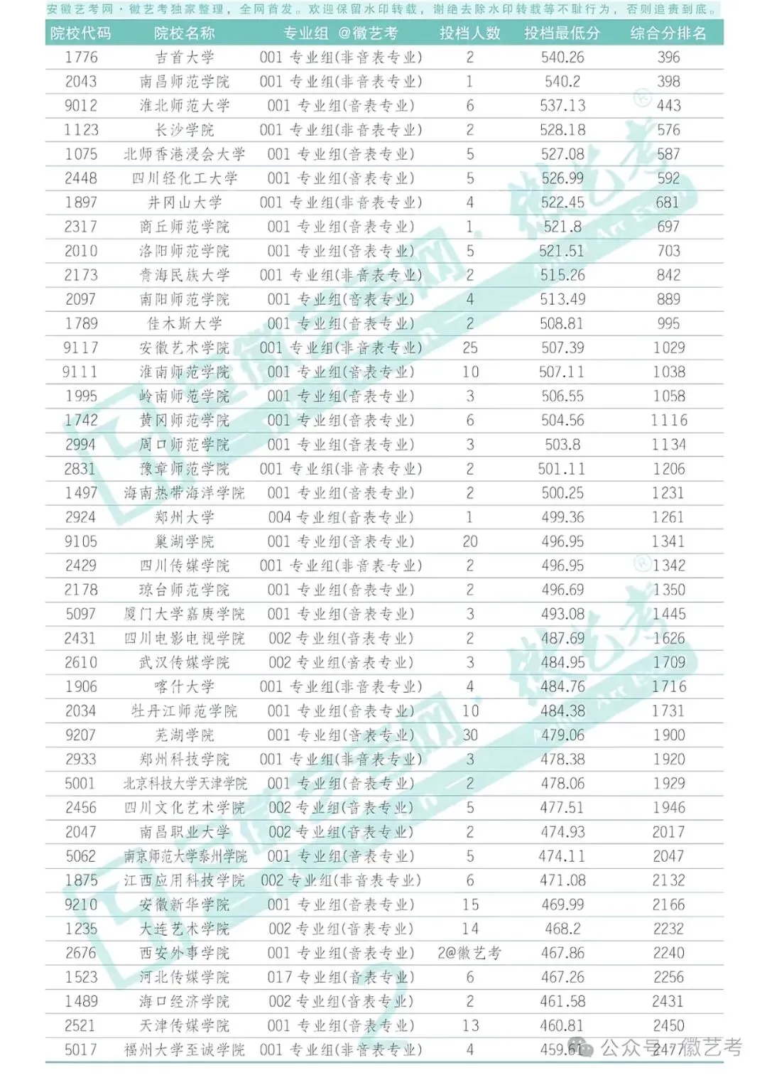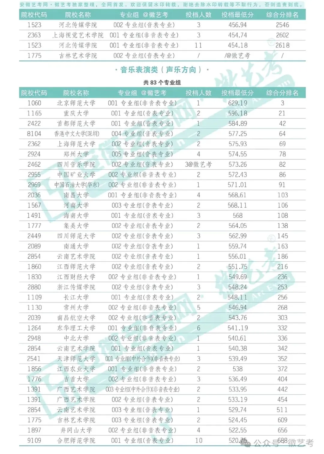 2025安徽音乐类(器乐)B段投档分排名完整版!